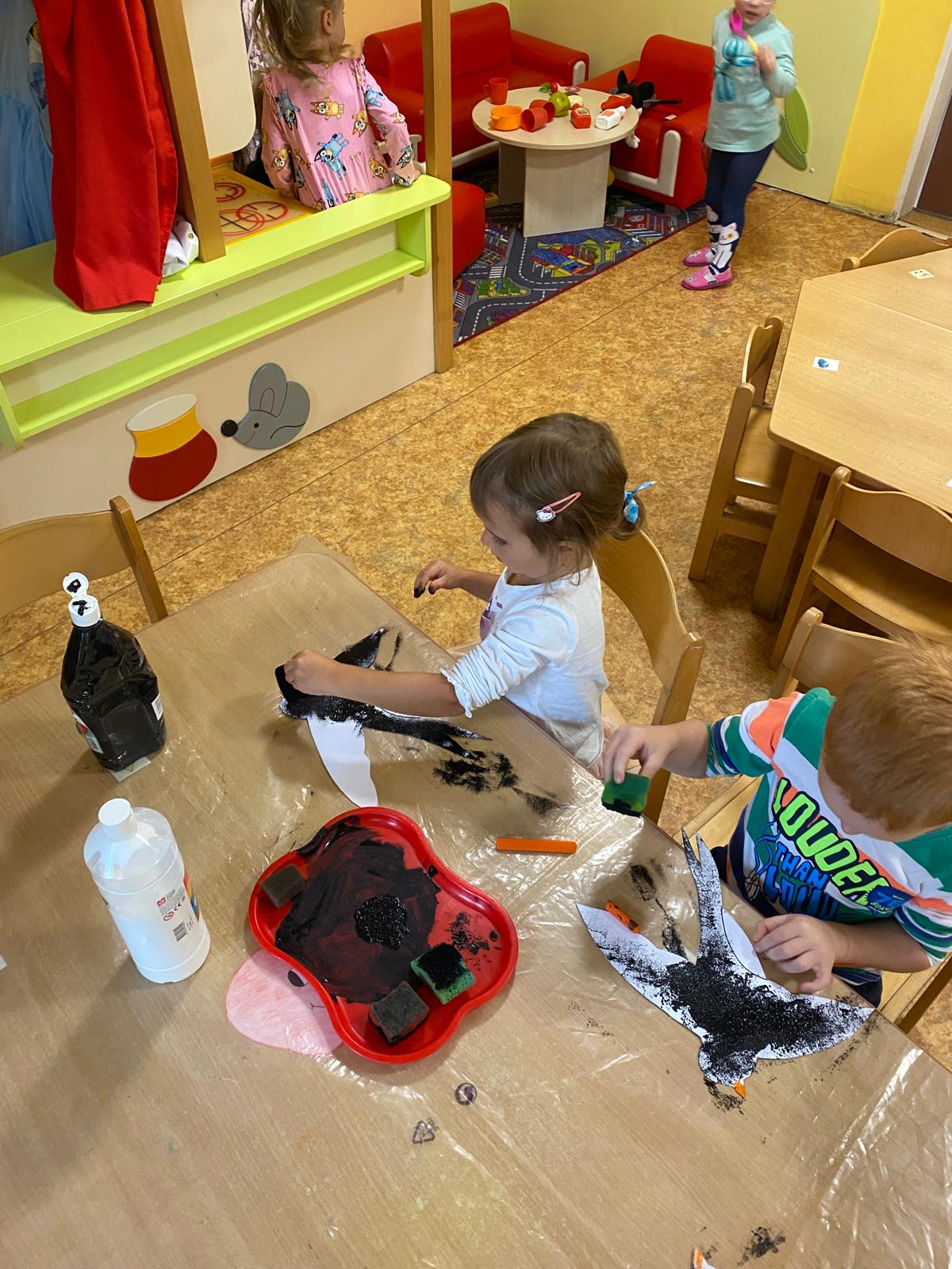 Tvoření vlaštovky, procházka, cvičení s destičkami a hudbou, Amálka má narozeninám, výroba boudy, budky a zvířátek