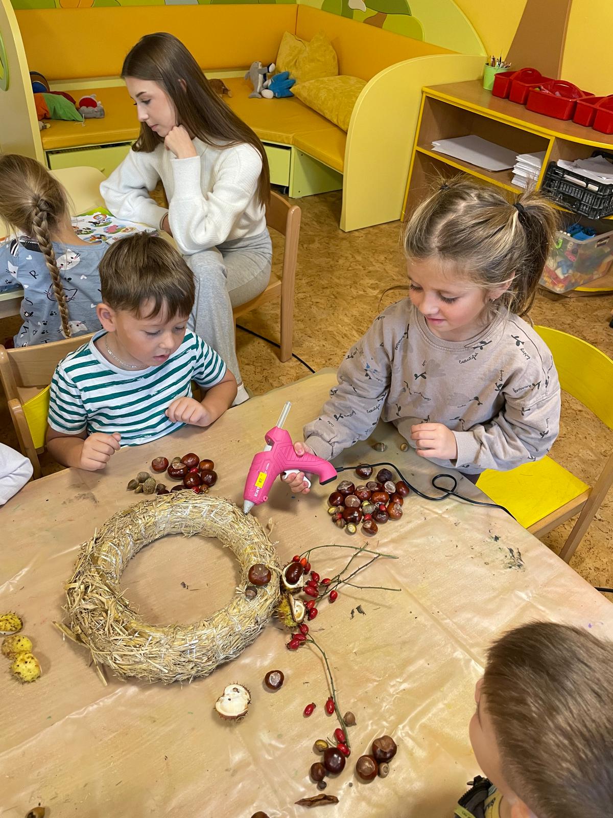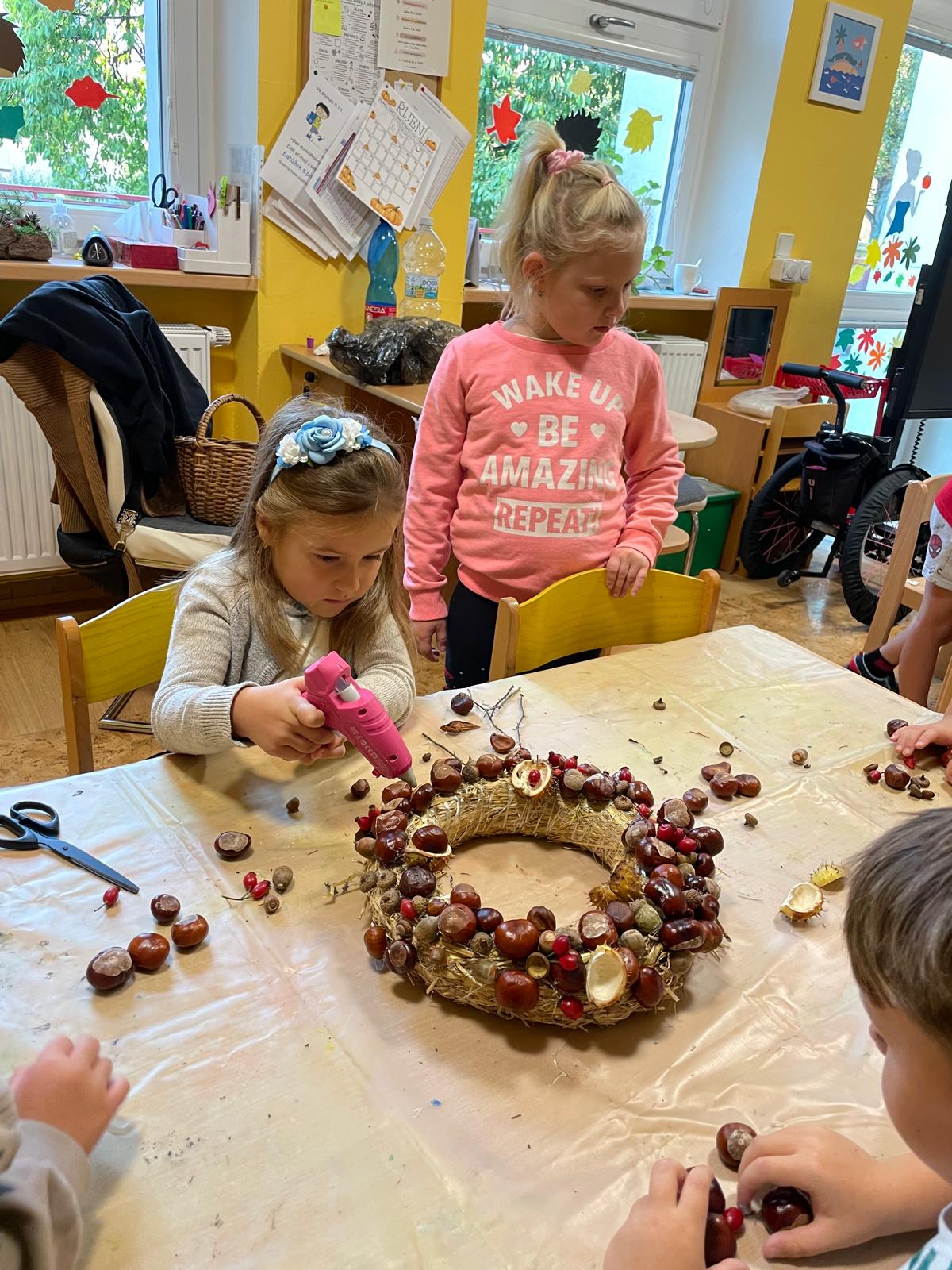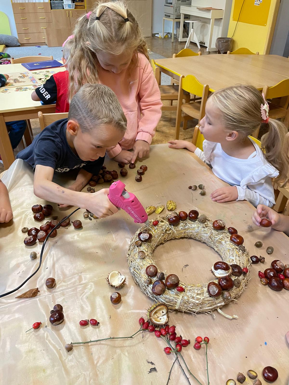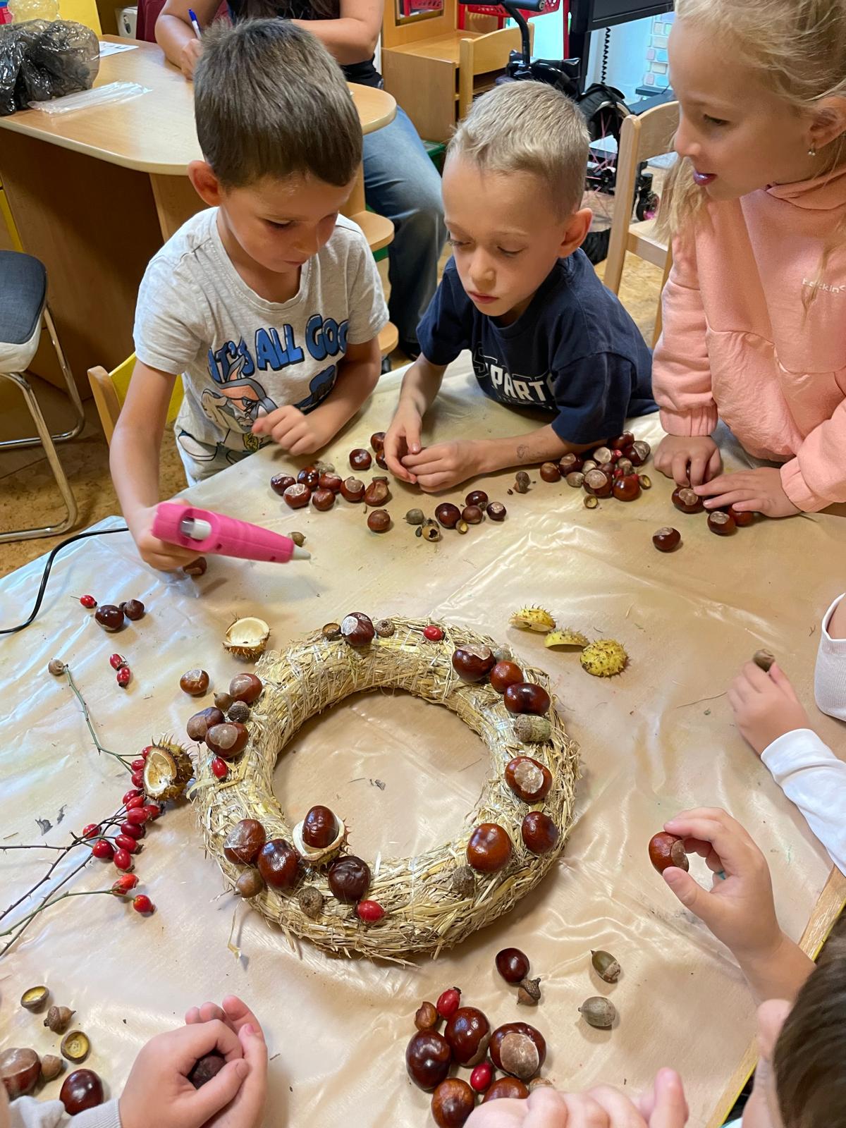 Výroba podzimního věnce.