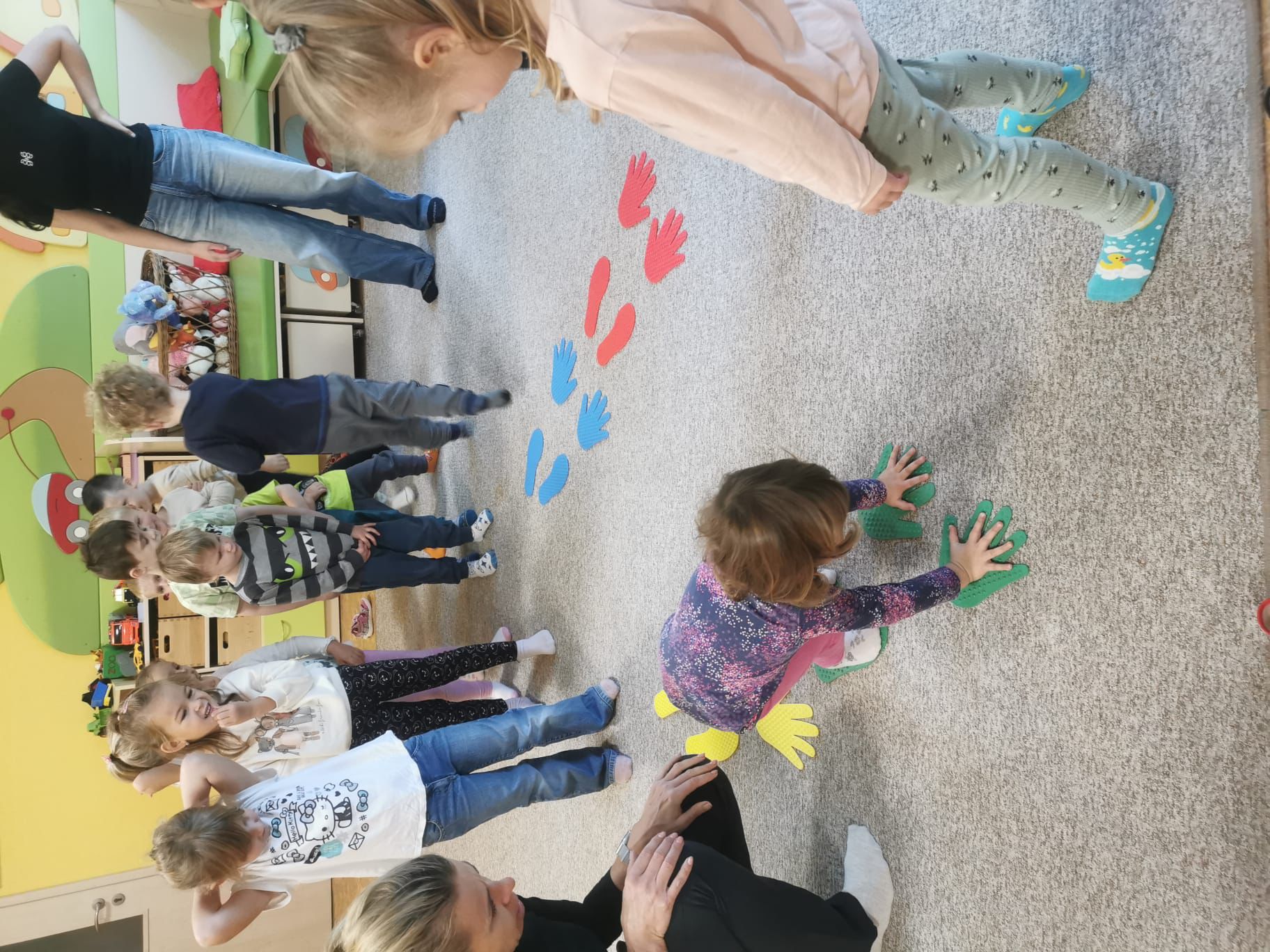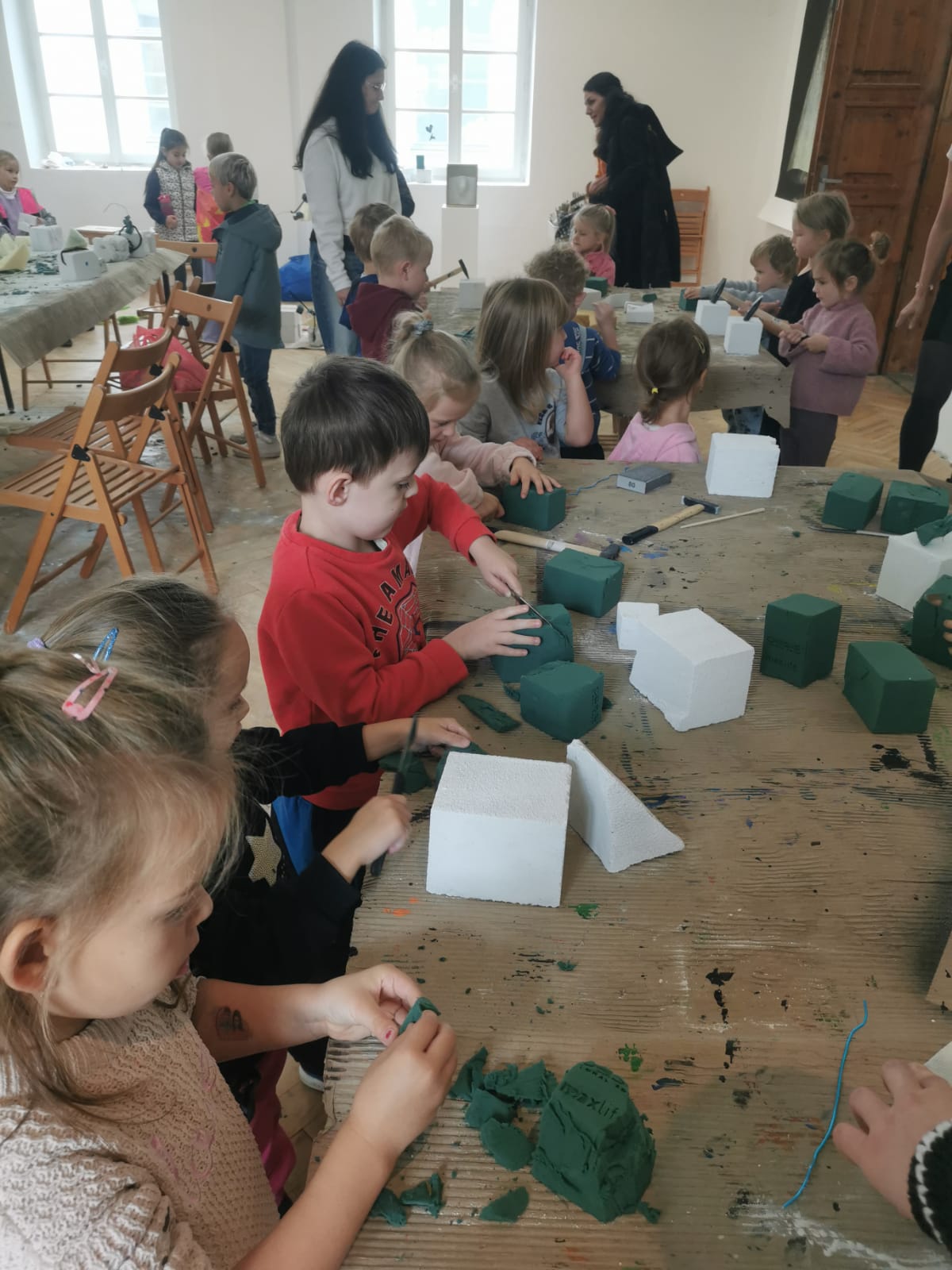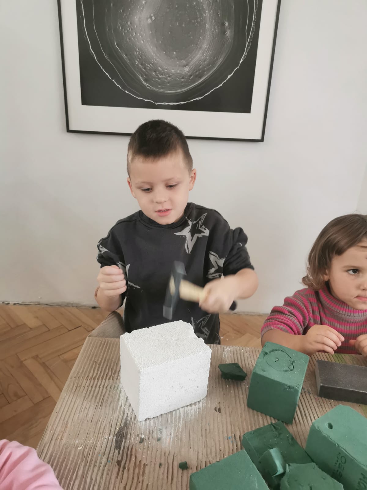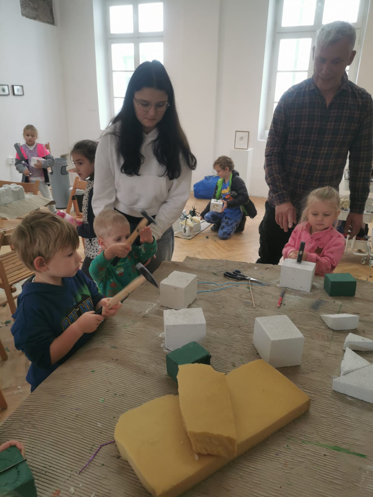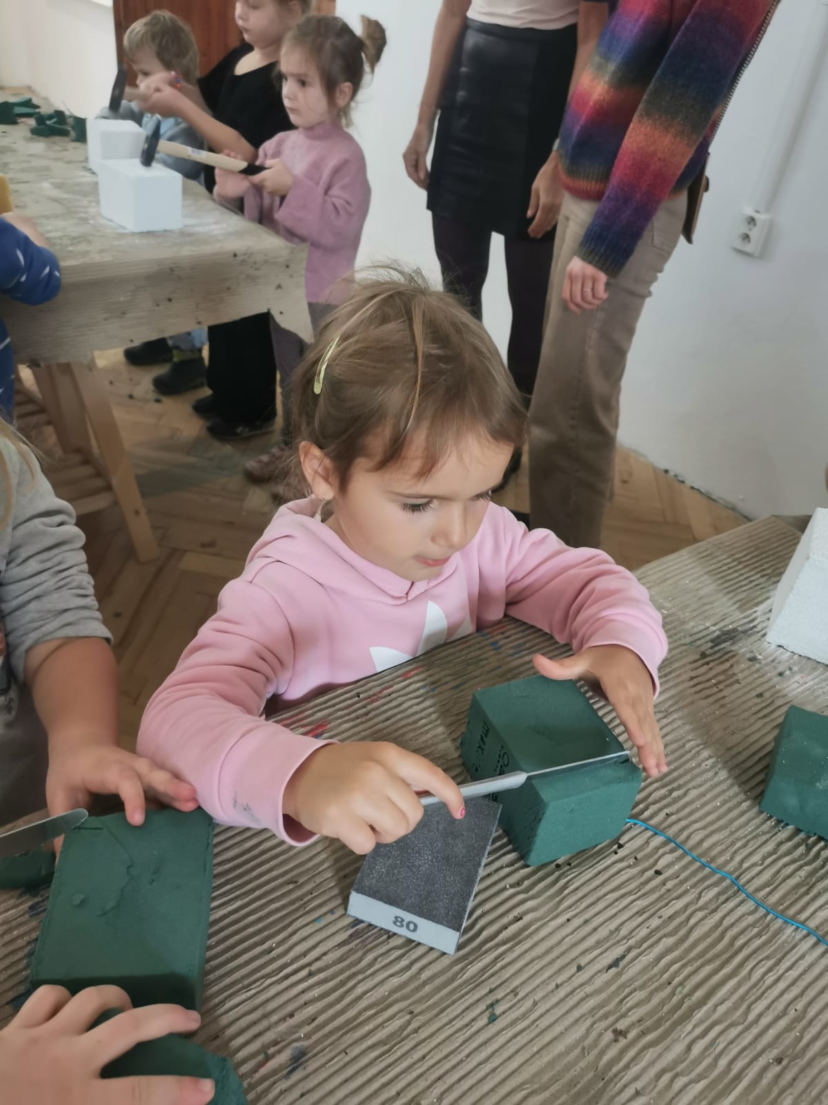 Lokomoční cviky, s padákem “ vítr”, a návštěva galerie. Výstava a sochařské tvoření.