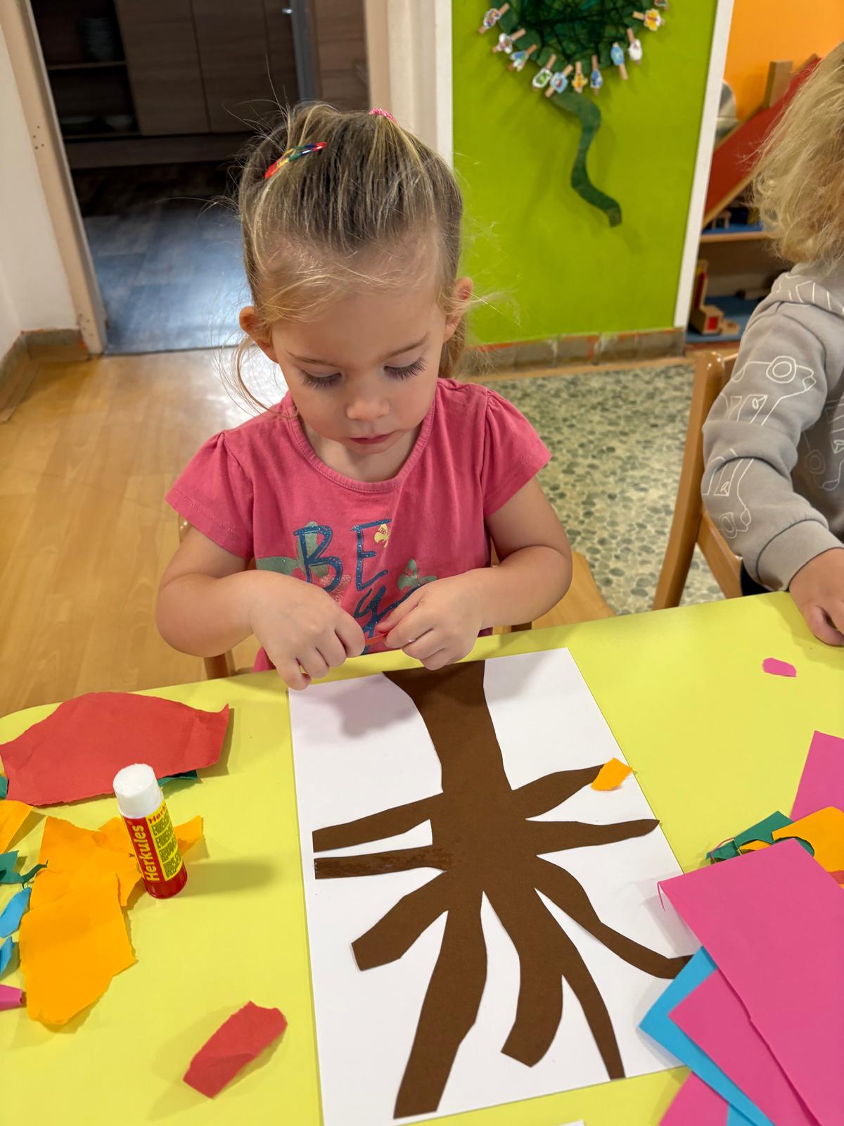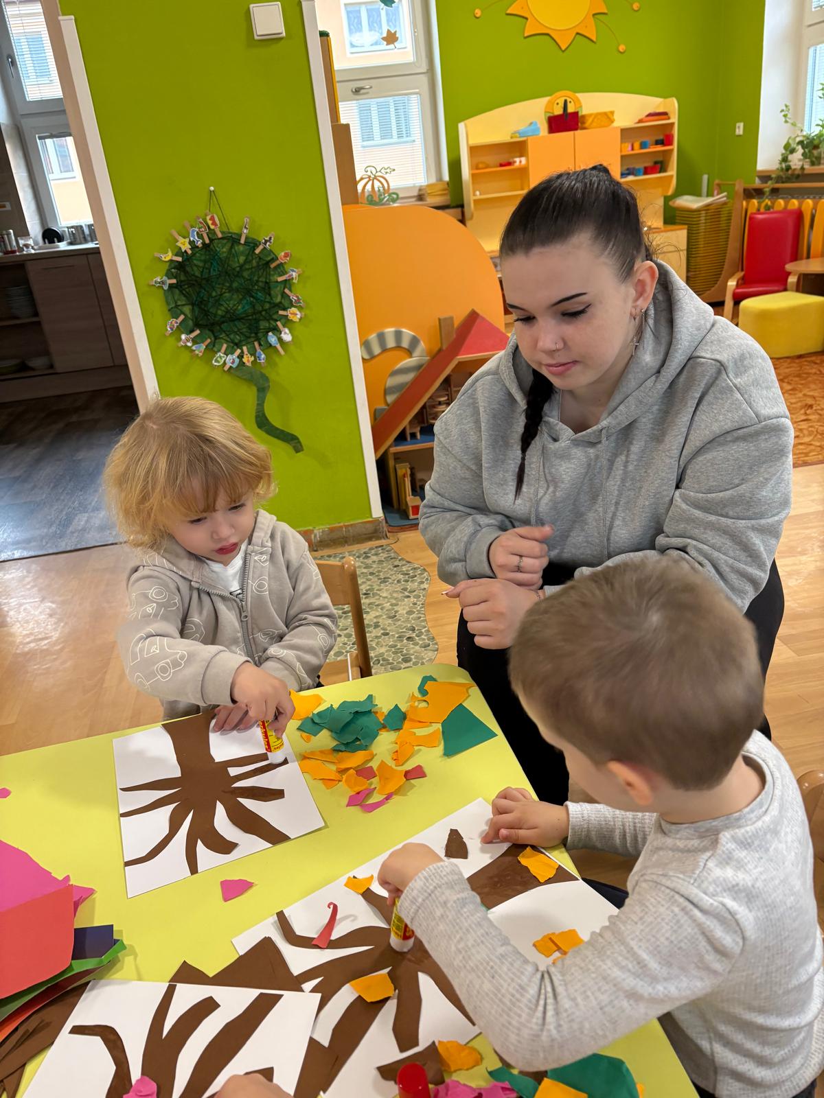 Vyrábíme podzimní strom a cvičíme s destičkami:-)