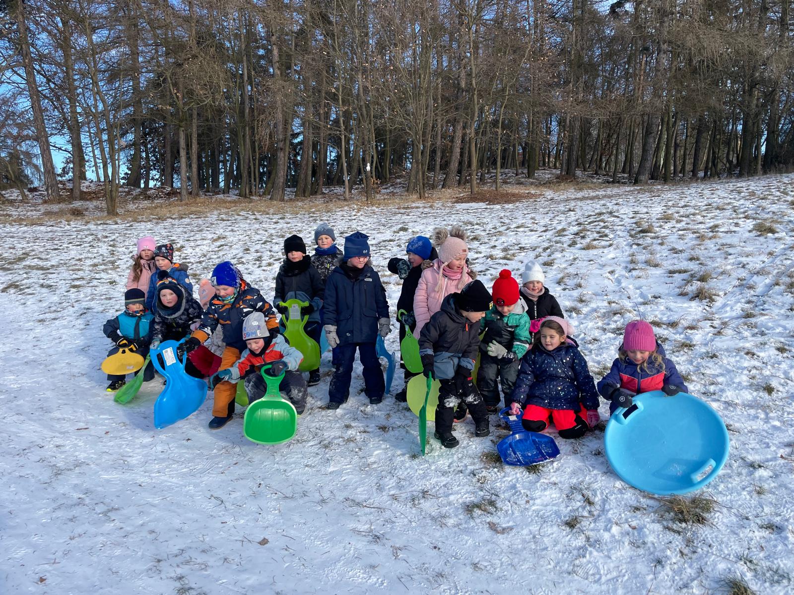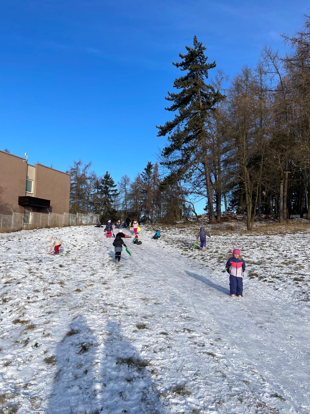 Zimní radovánky na kopci.