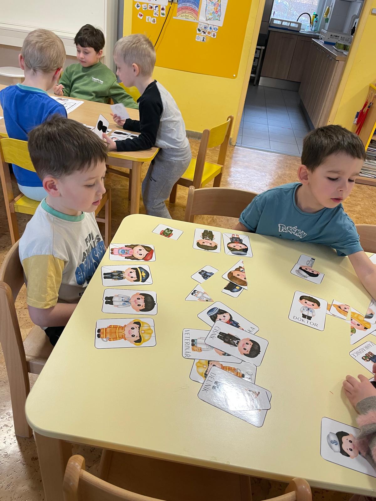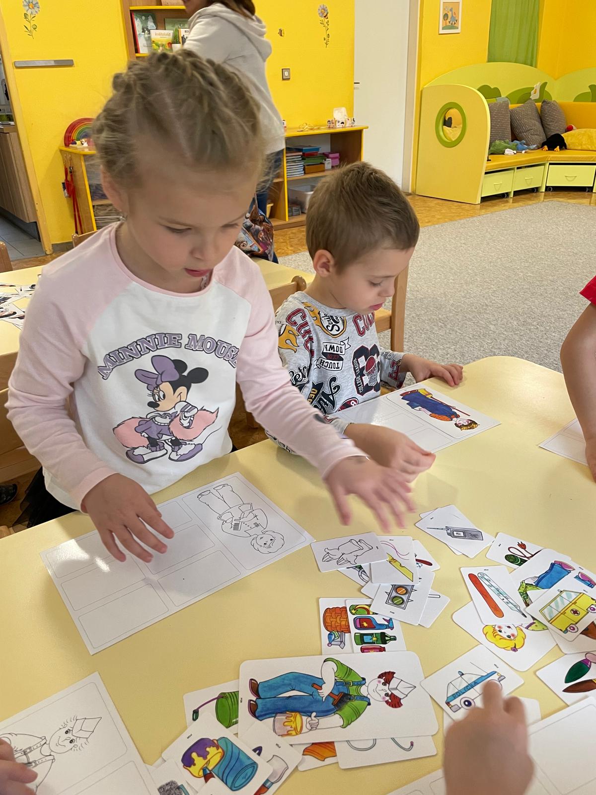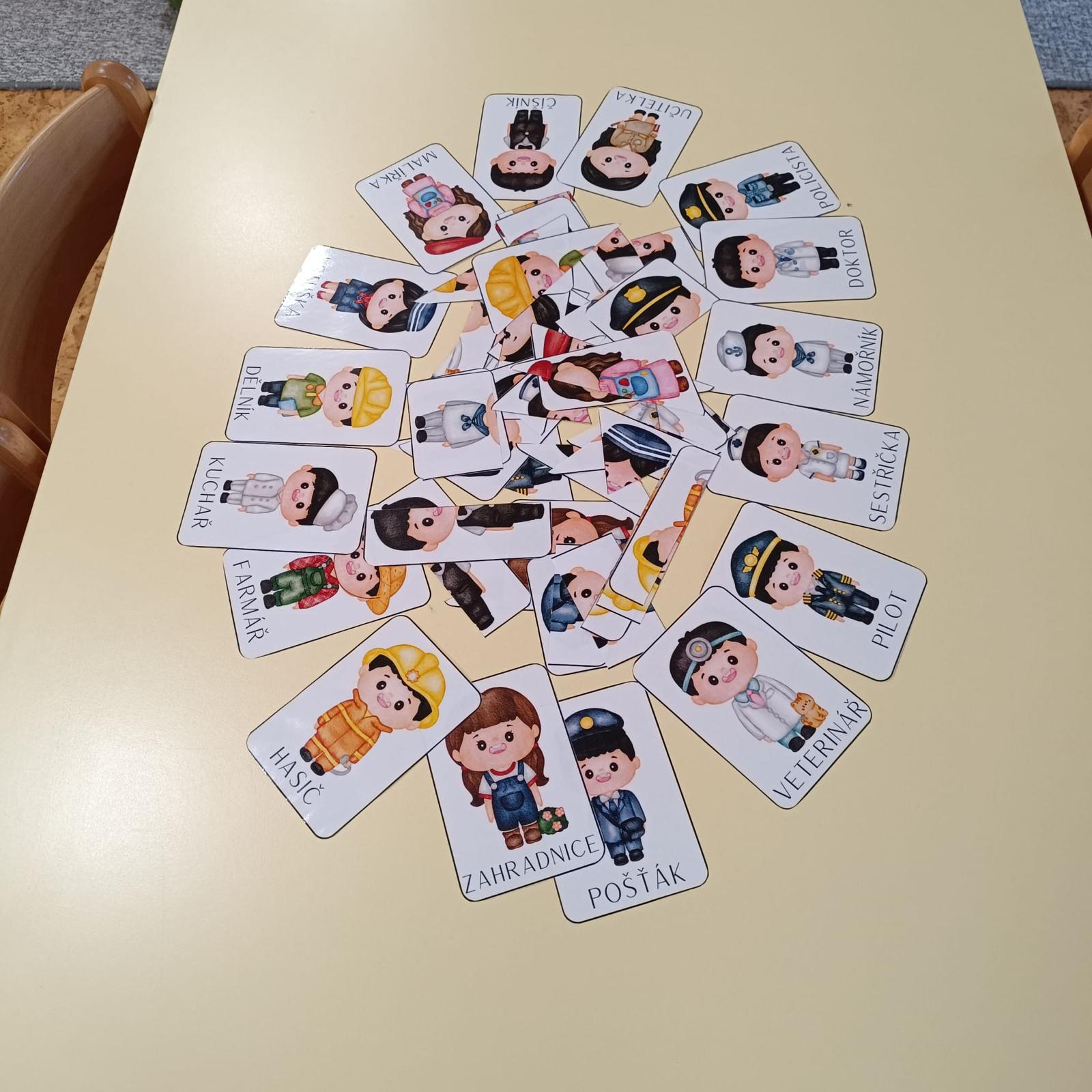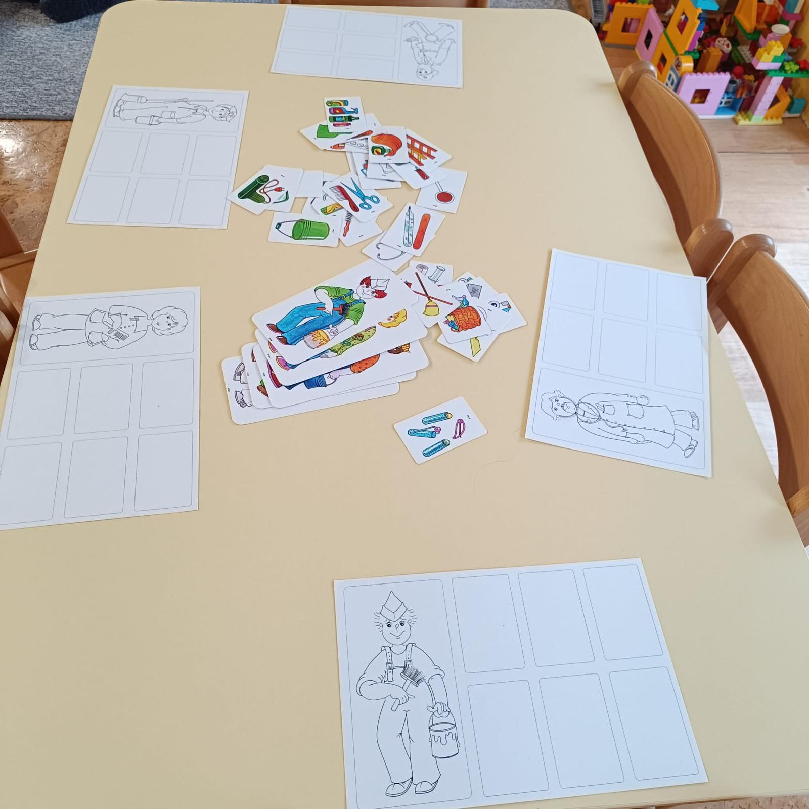 Činnosti na téma povolání - počítání, stínové obrázky, bludiště, skládanky.