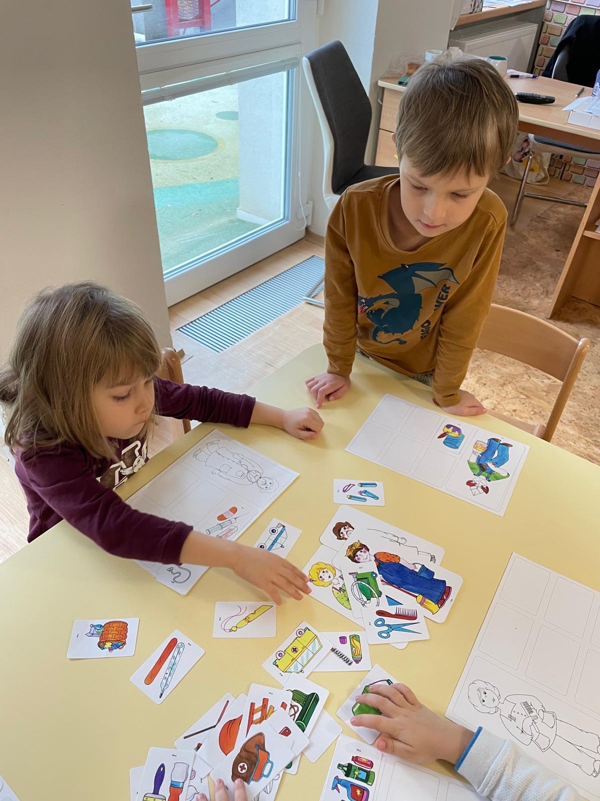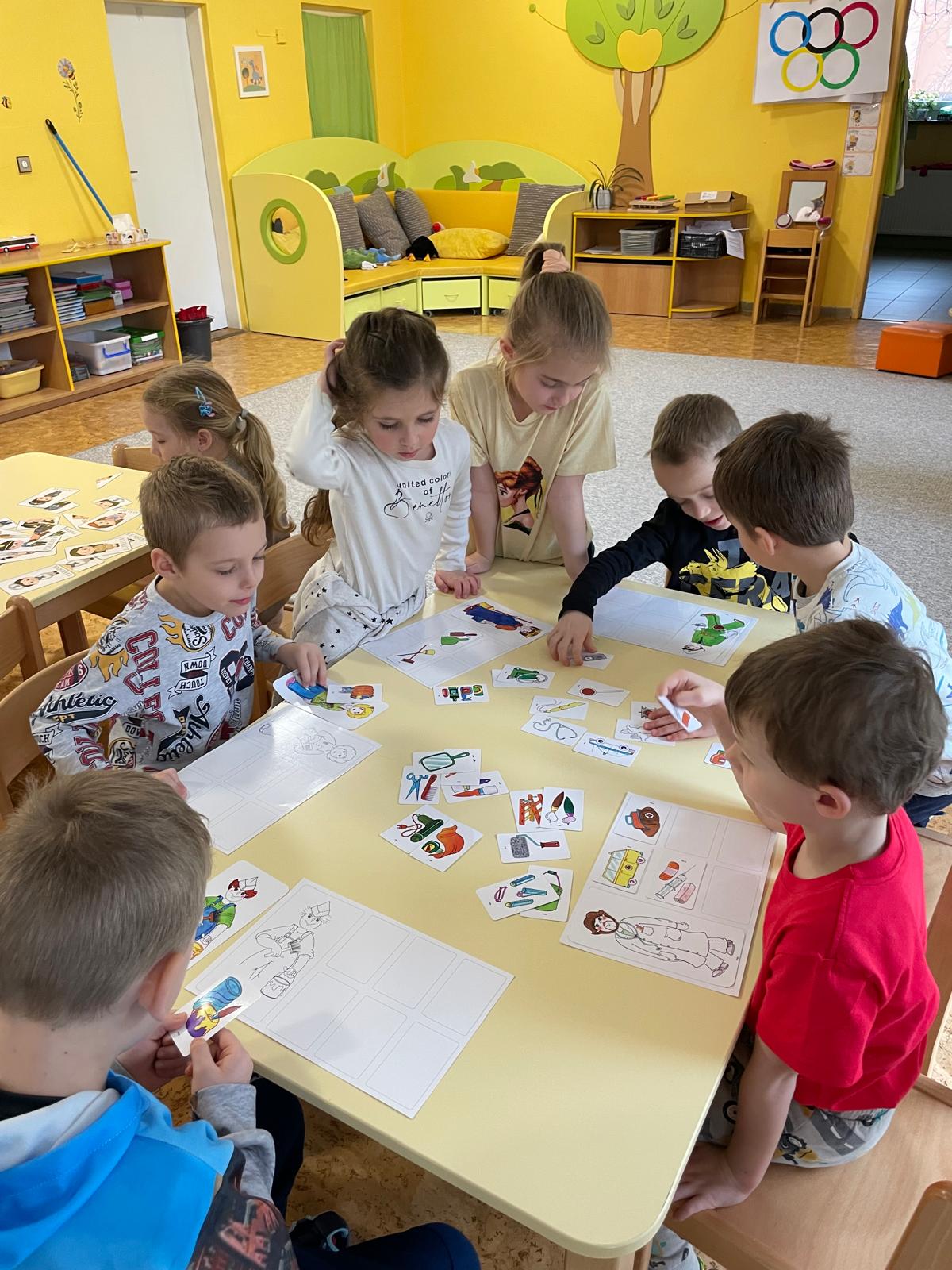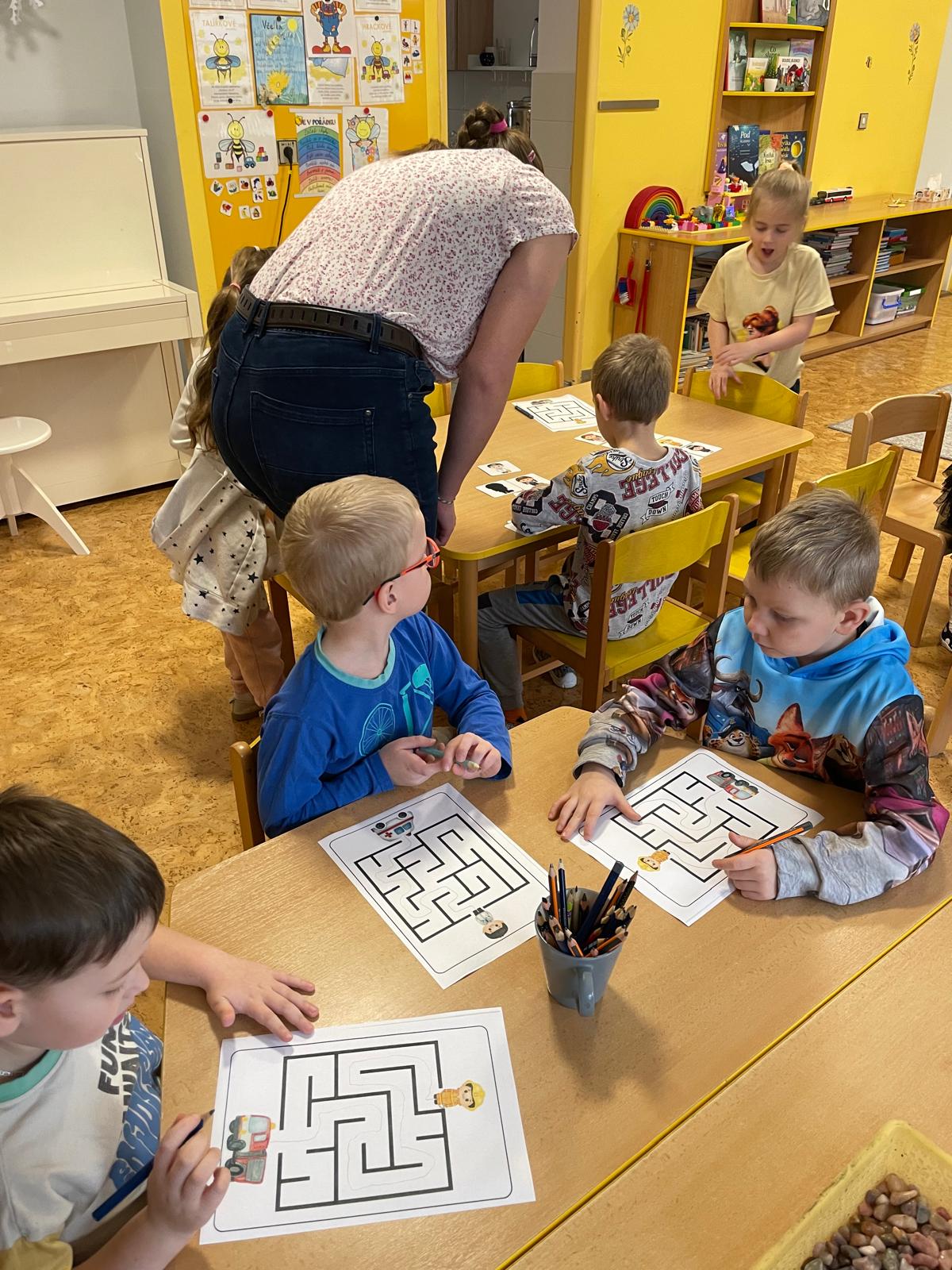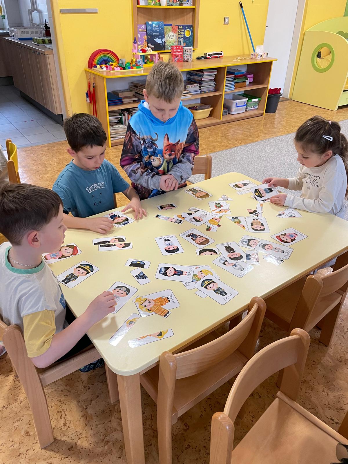 Činnosti na téma povolání - počítání, stínové obrázky, bludiště, skládanky.
