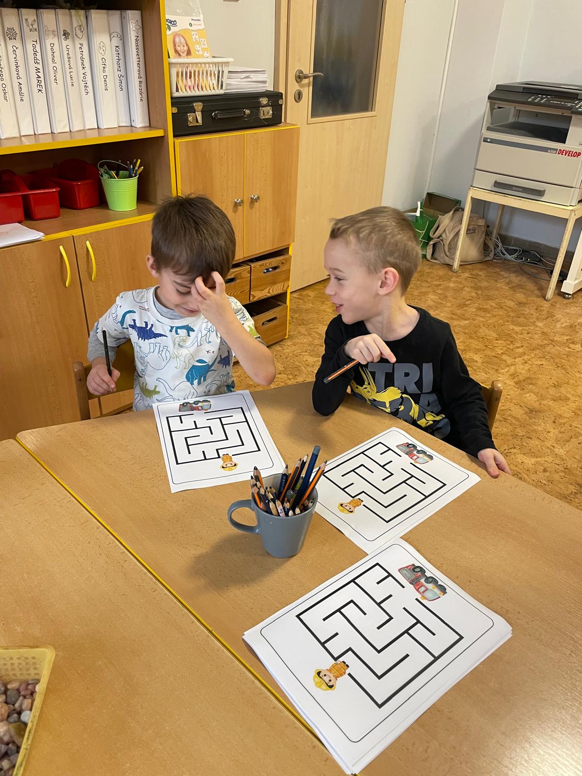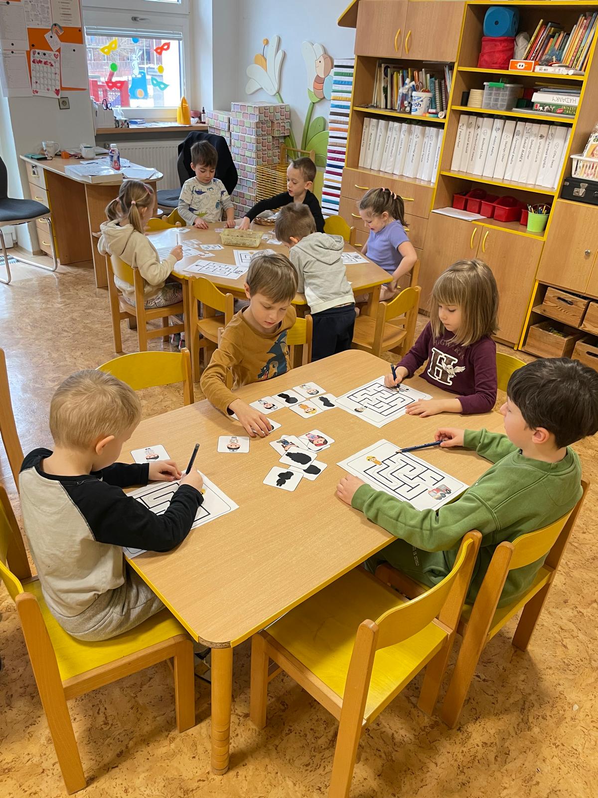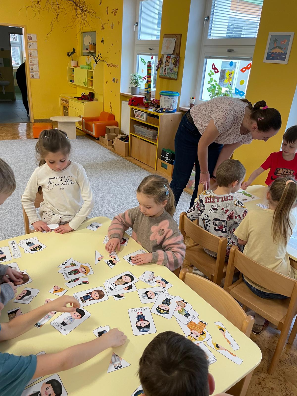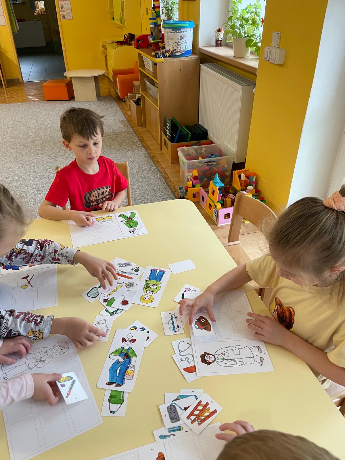 Činnosti na téma povolání - počítání, stínové obrázky, bludiště, skládanky.