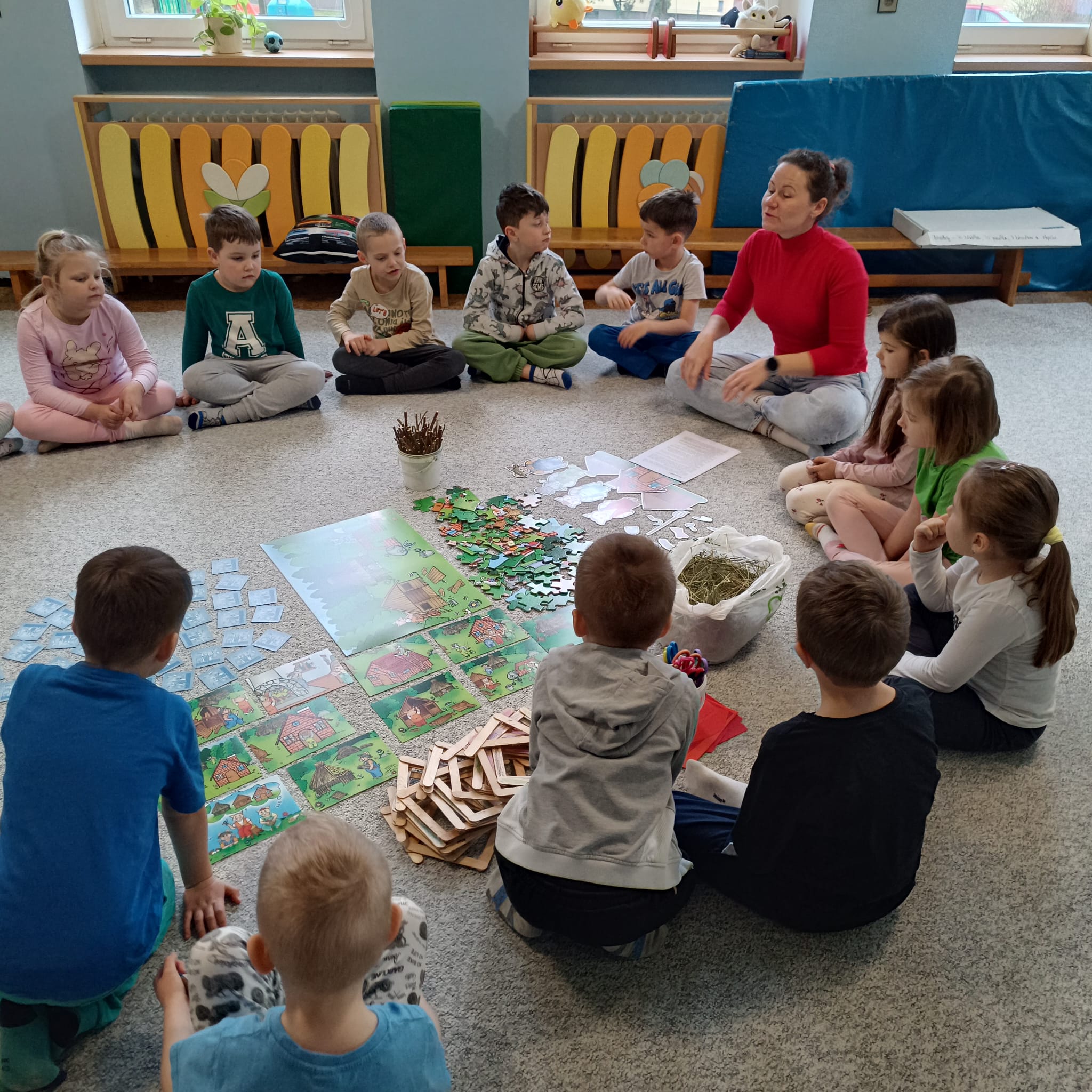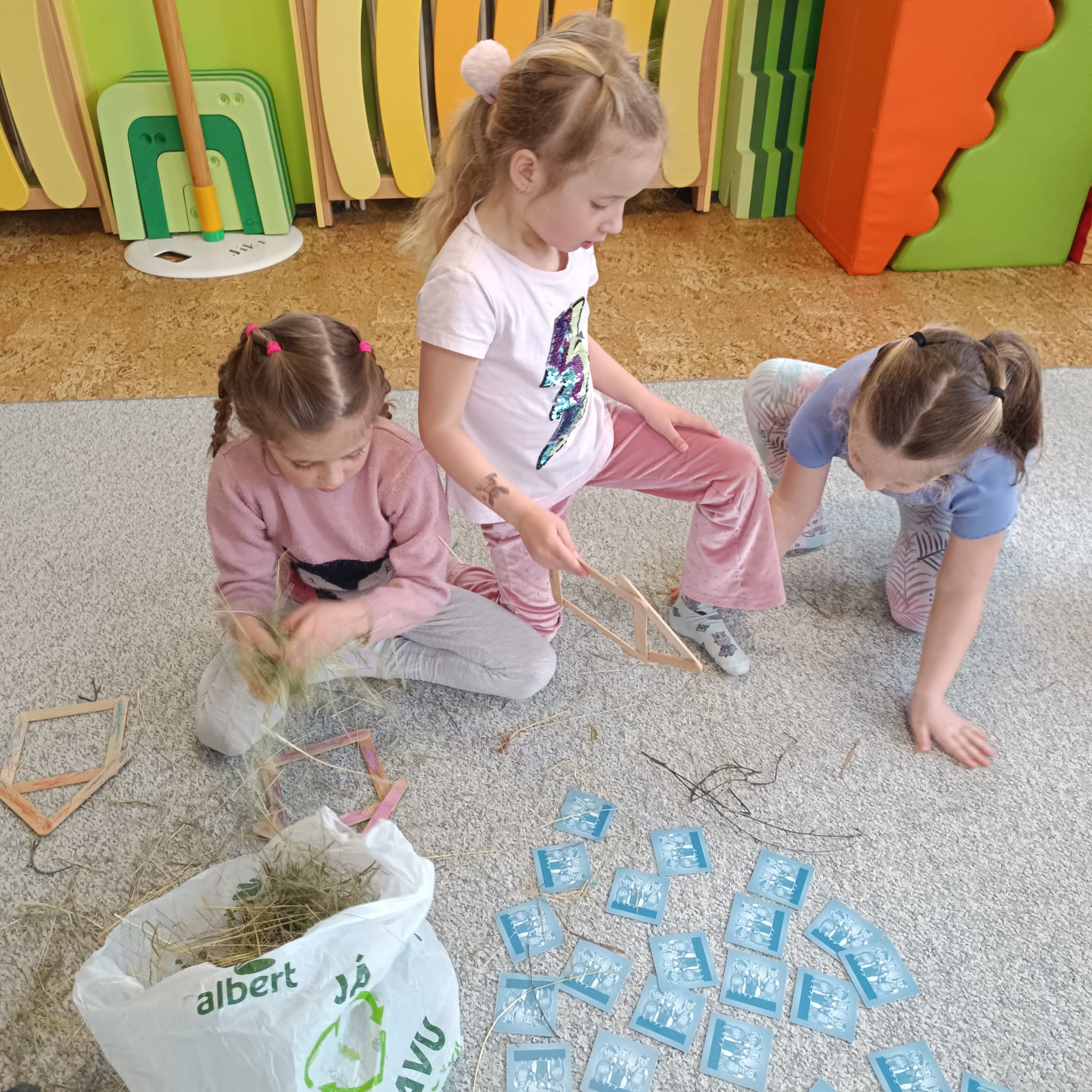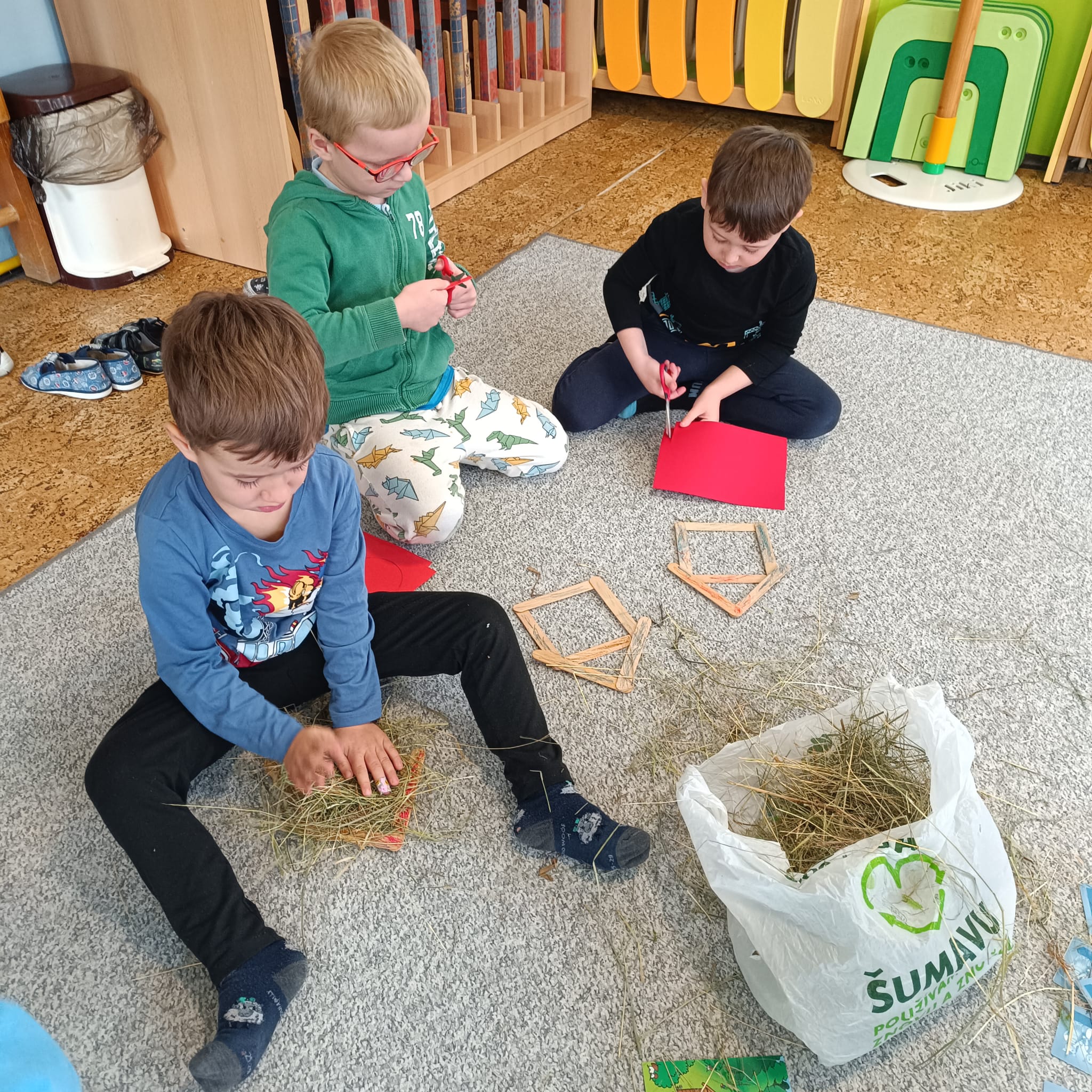 Artefiletika - pohádka "O třech prasátkách" a stavba domečku.