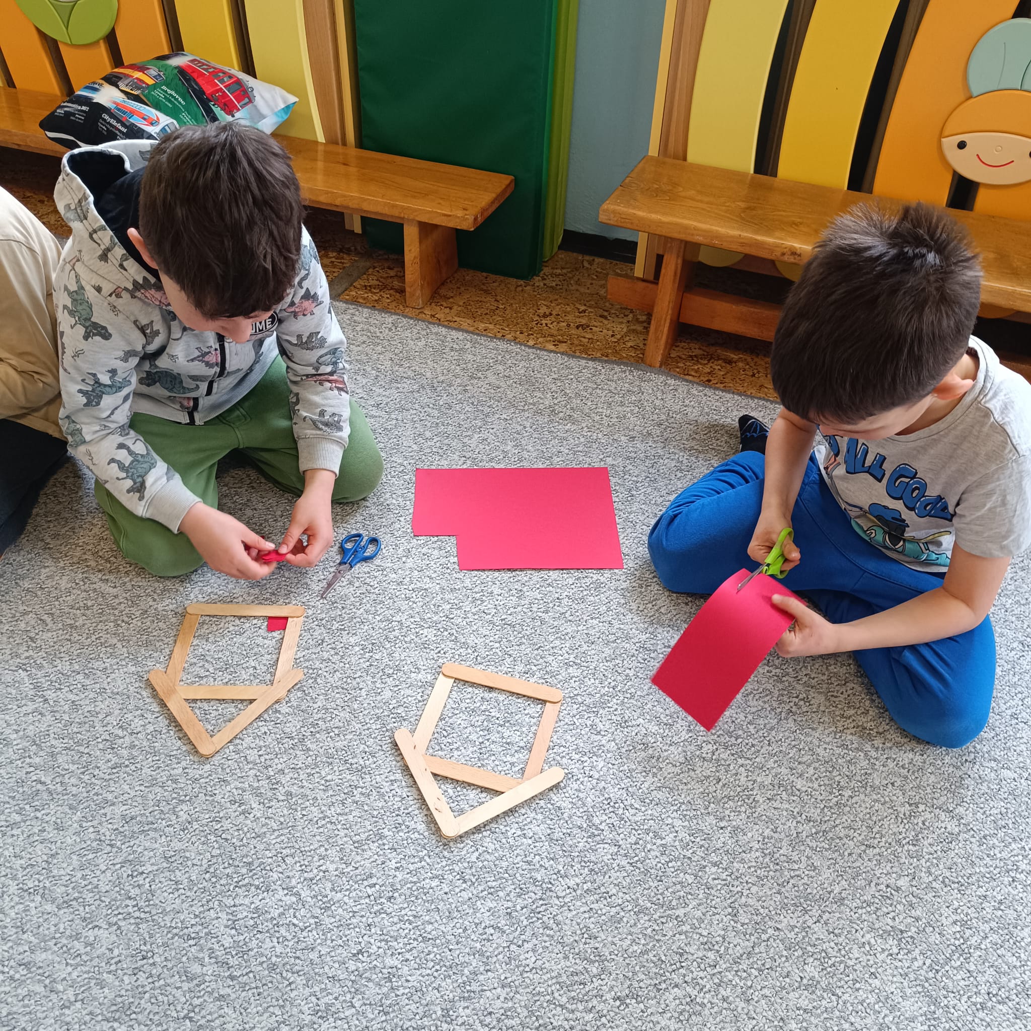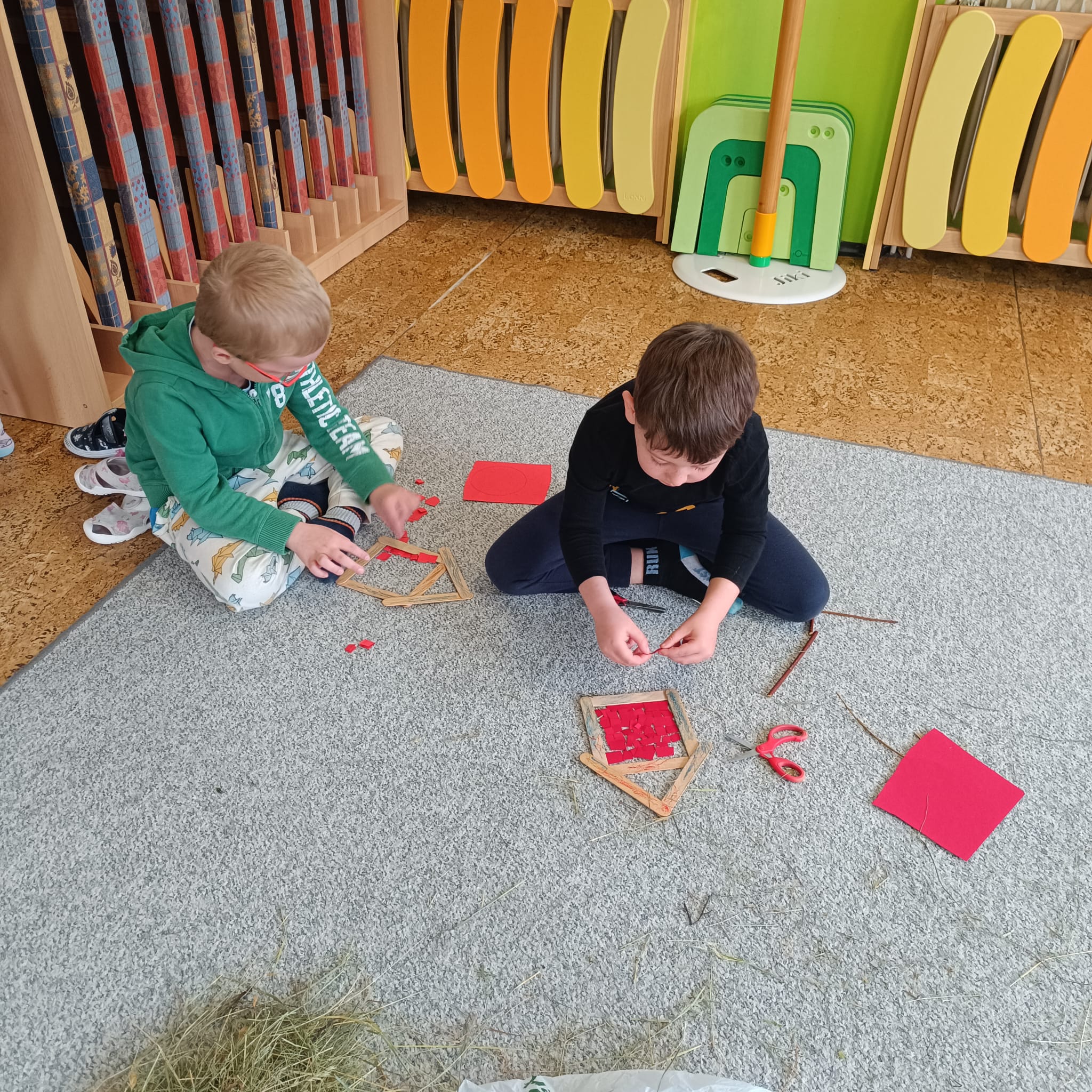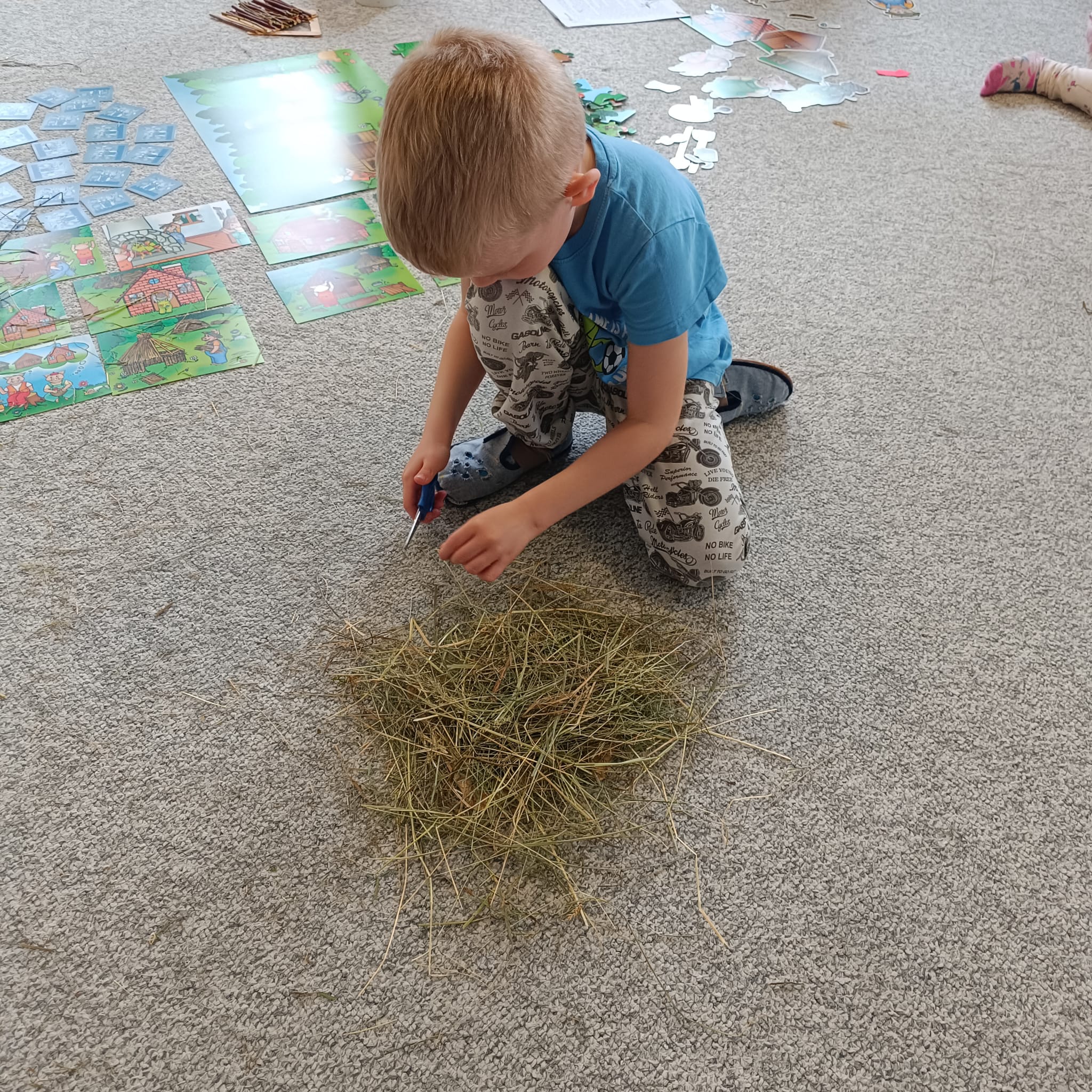 Artefiletika - pohádka "O třech prasátkách" a stavba domečku.