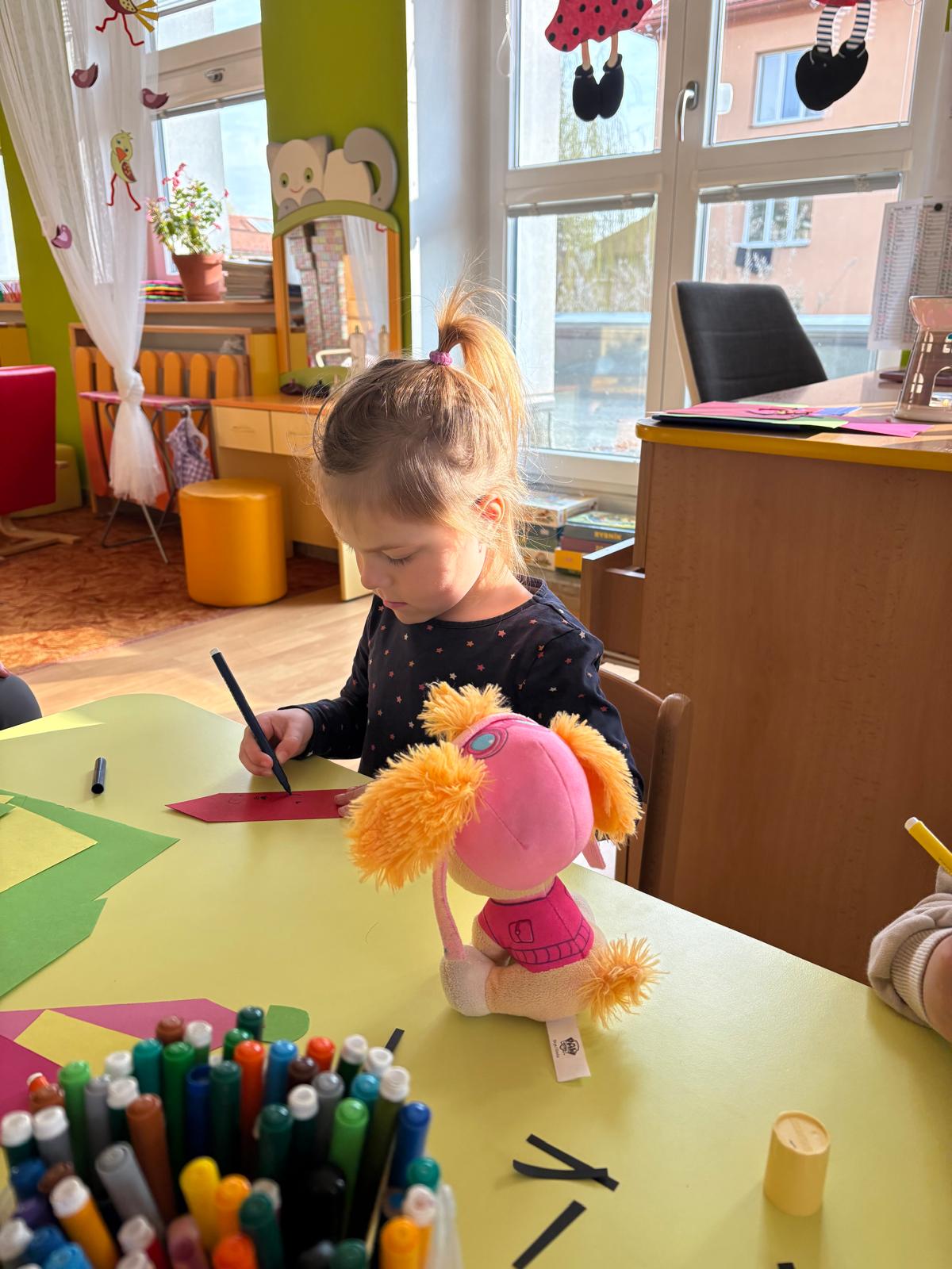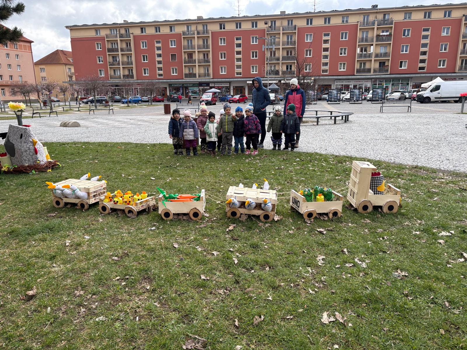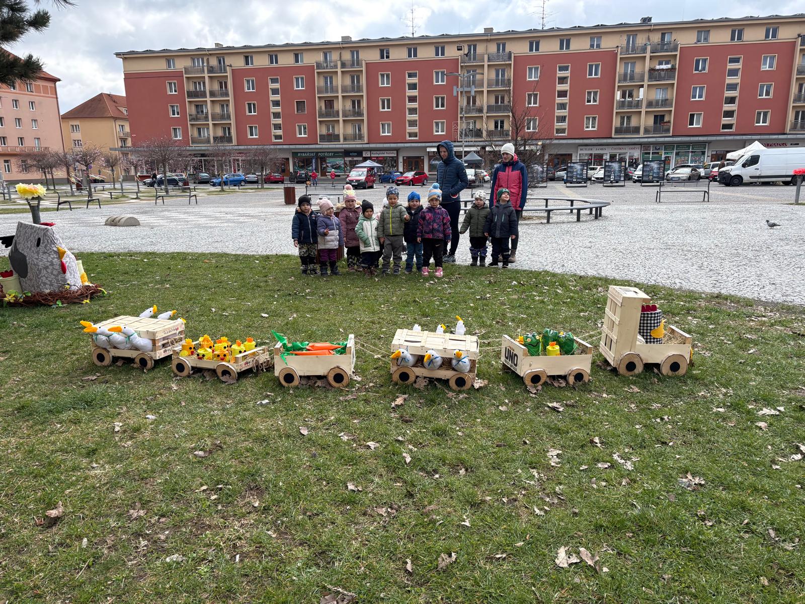 Povídání o knížkách, výroba záložky, cvičení, Velikonoční tvoření a vycházka na vyzdobené náměstí:-)