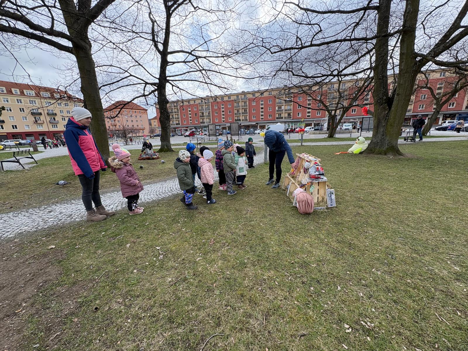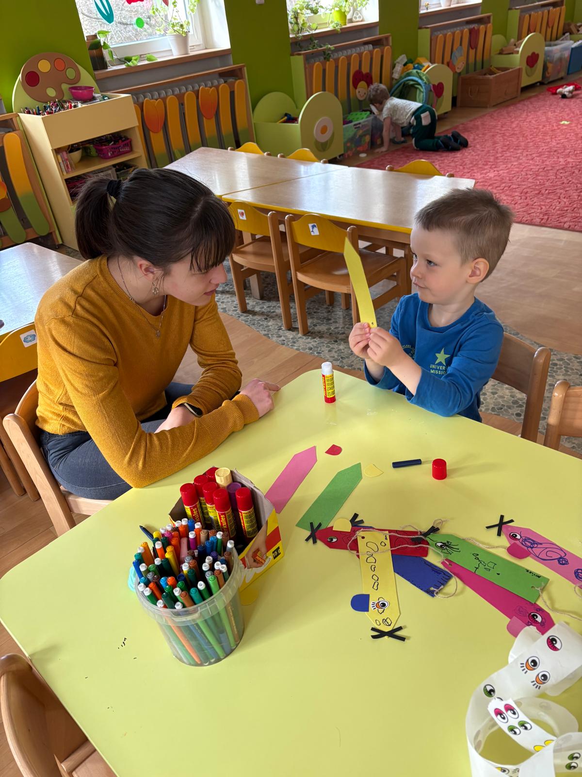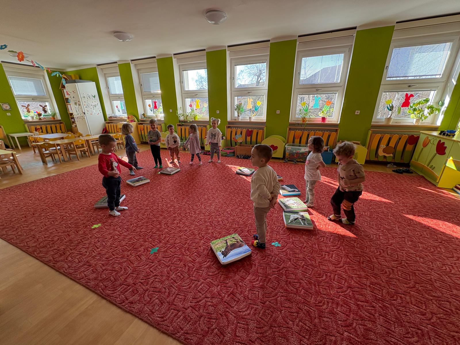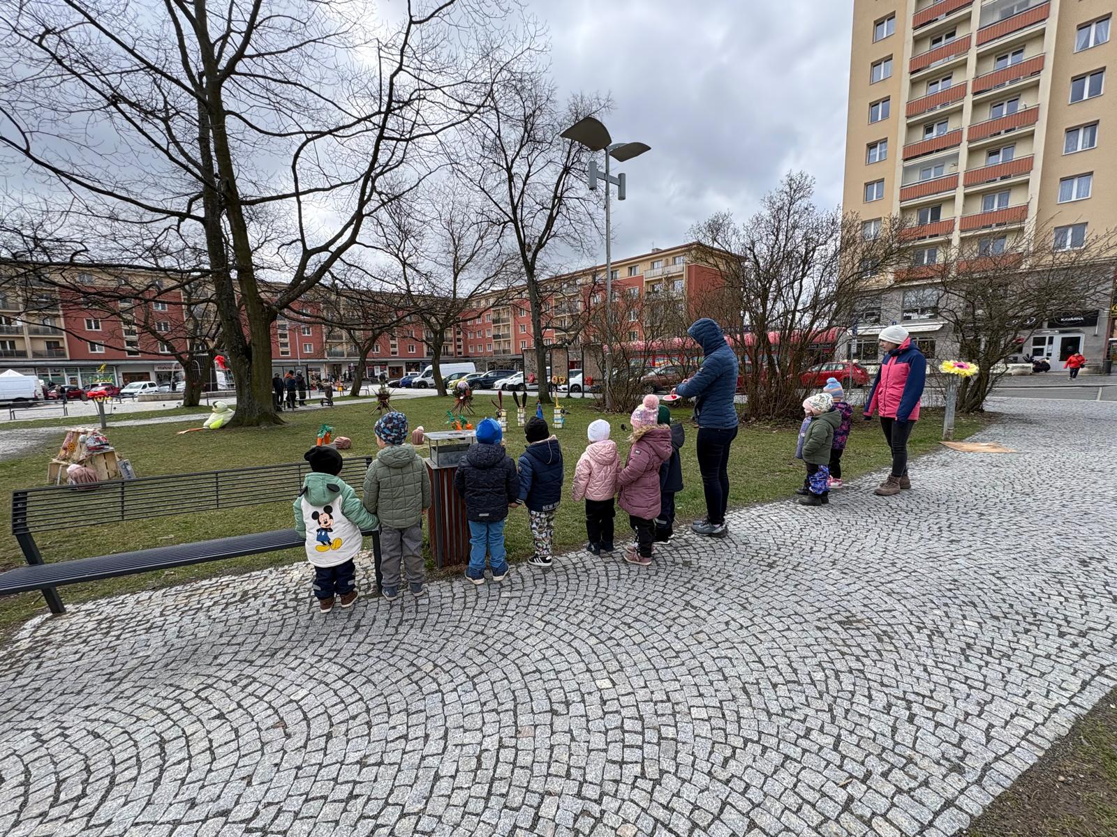 Povídání o knížkách, výroba záložky, cvičení, Velikonoční tvoření a vycházka na vyzdobené náměstí:-)