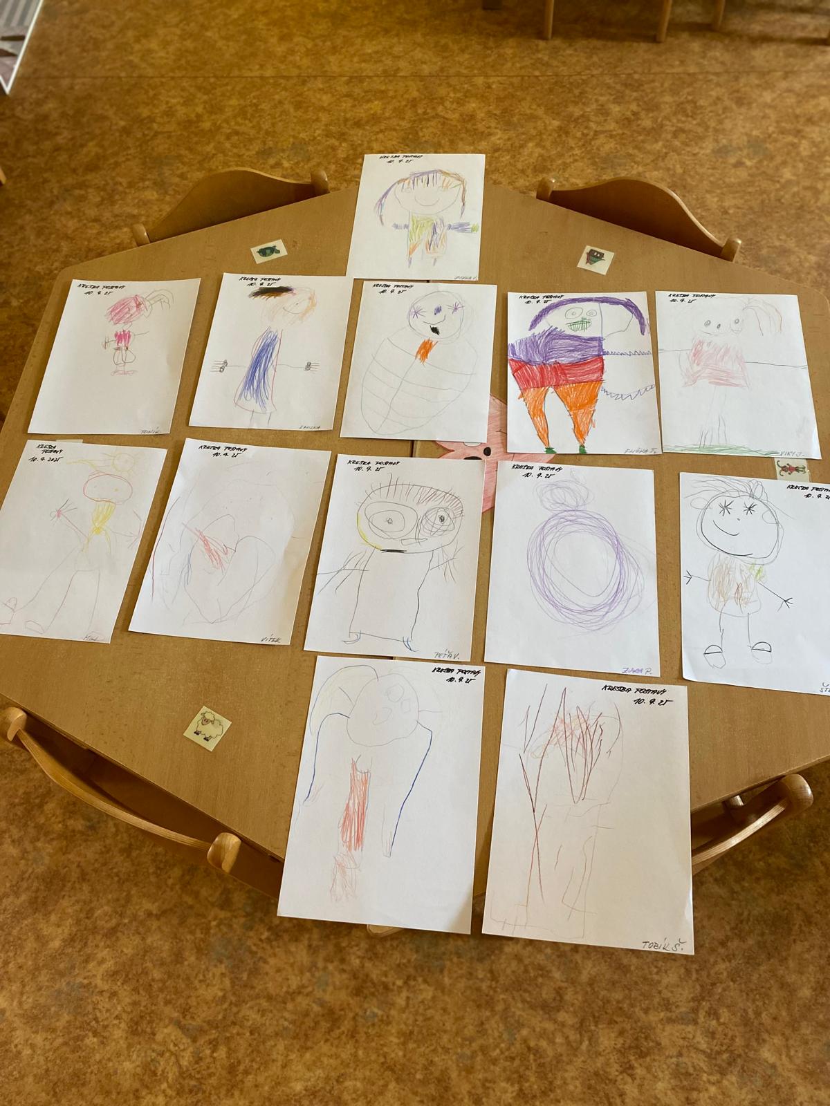 Odpolední činnosti - hry ve skupinách a kresba postavy.