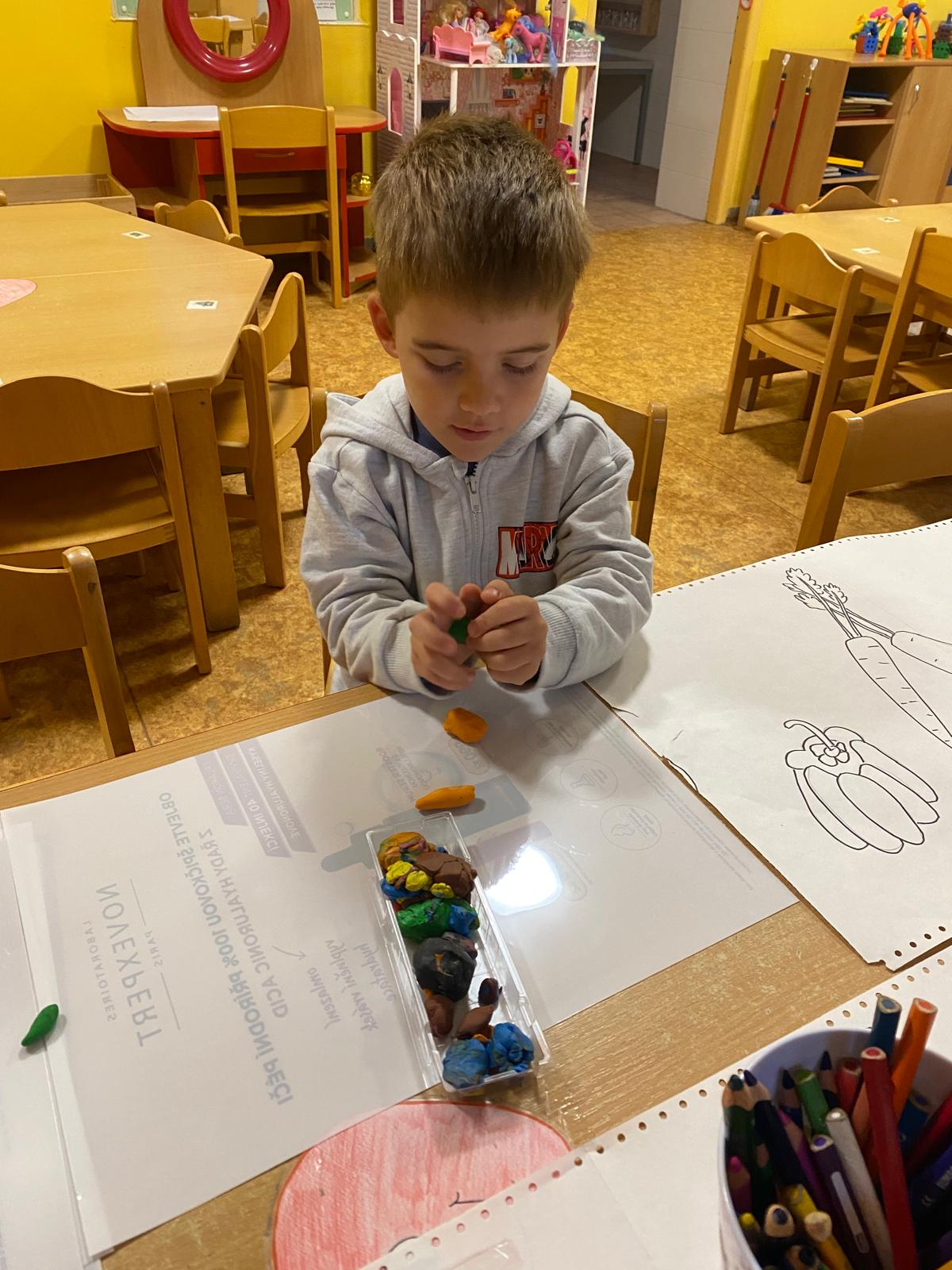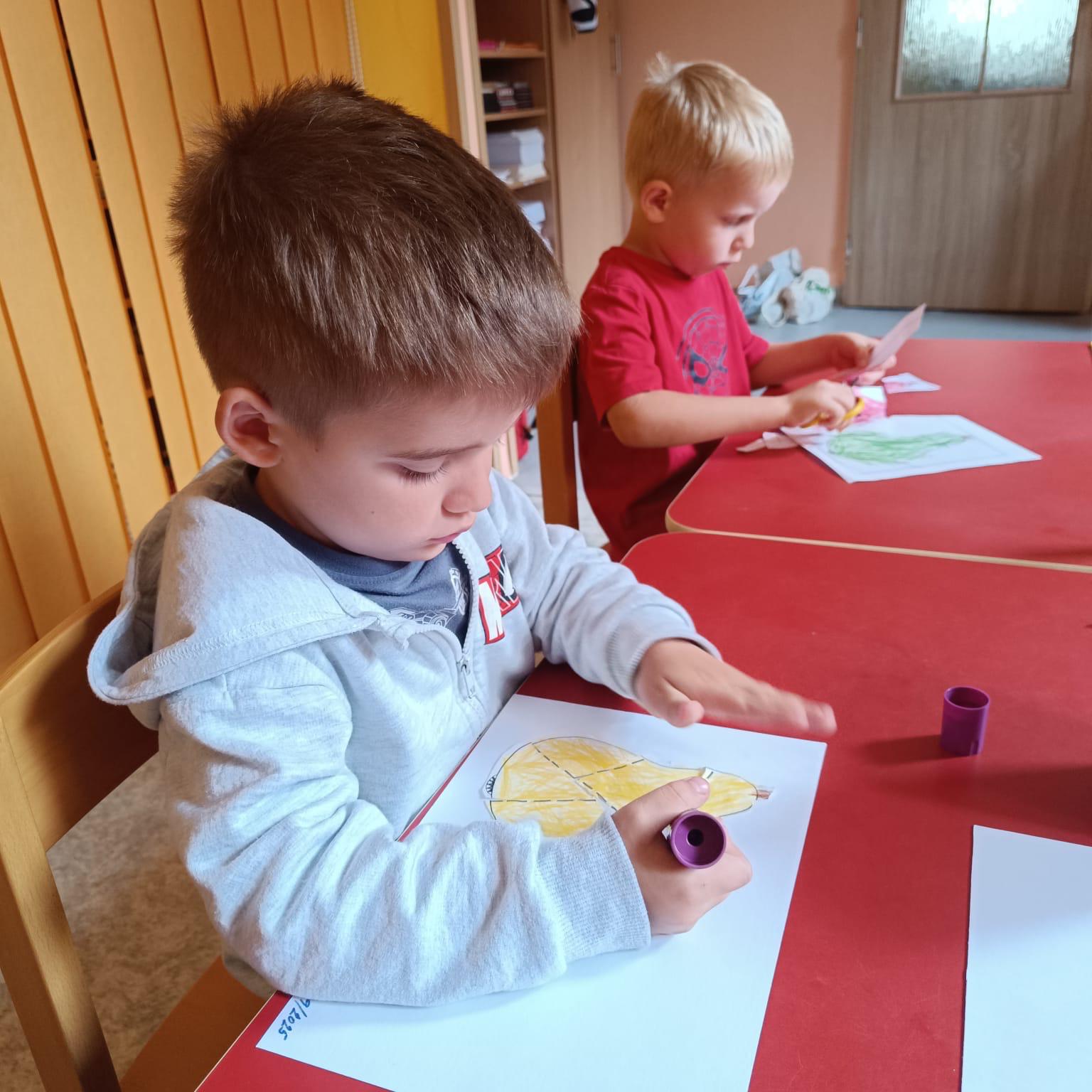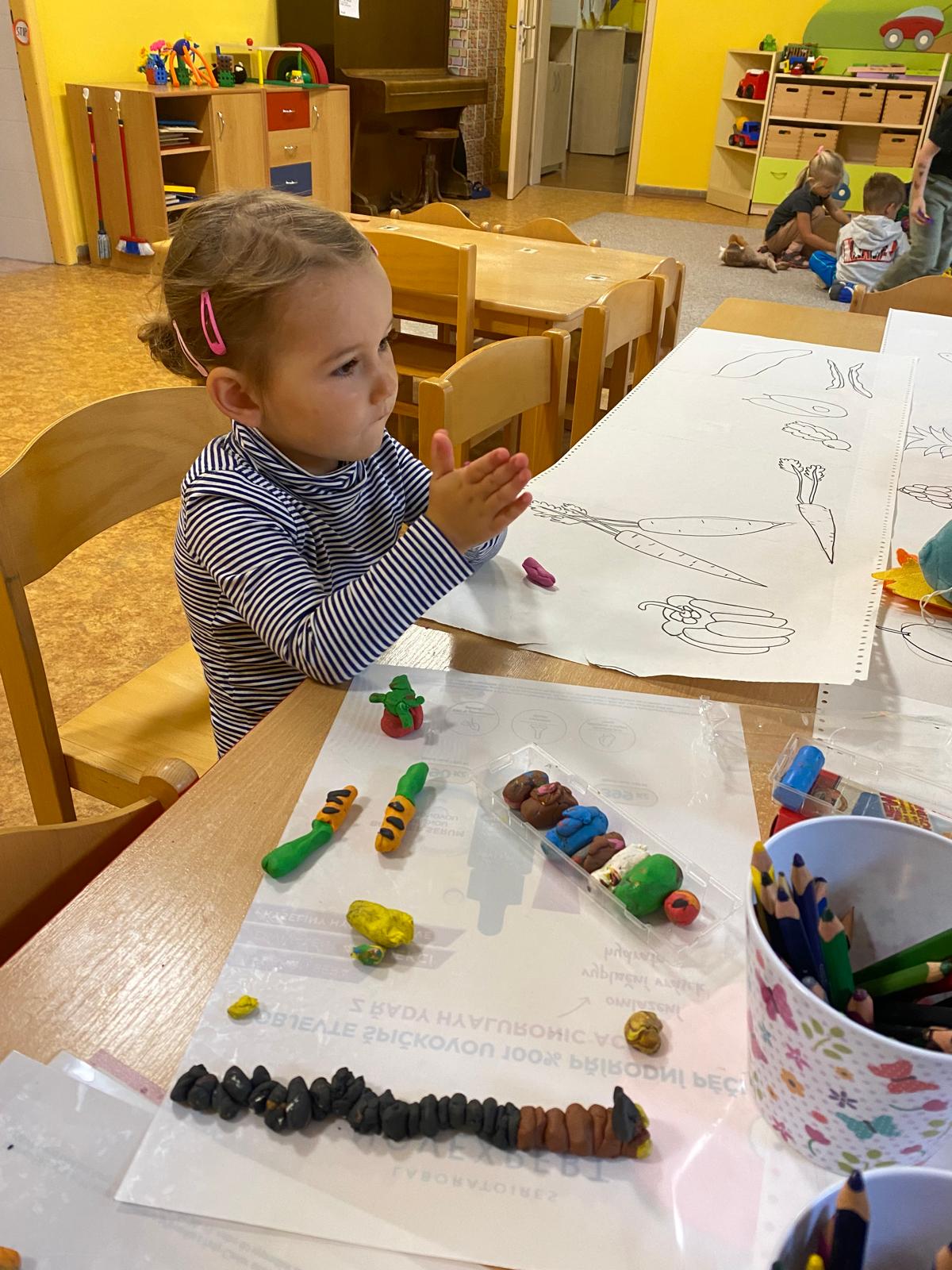Téma týdne - Ovoce a zelenina. Modelování, stříhání a lepení. Procházka na nám. 17 listopadu.