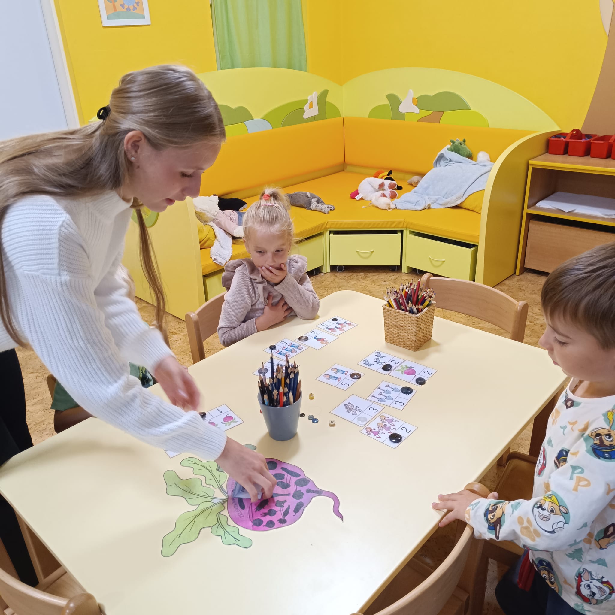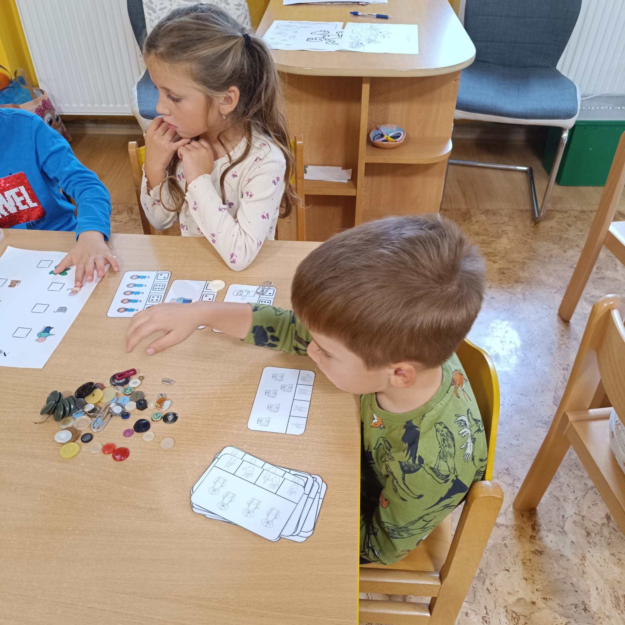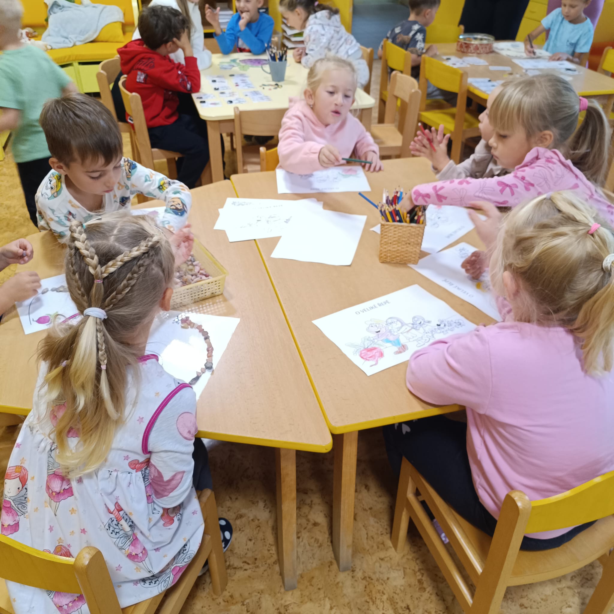 - Pohádkové aktivity u stolečku - počítání, hledání postav v mouce, přiřazování stínů, skládání cestiček, vybarvování ve dvojici.
