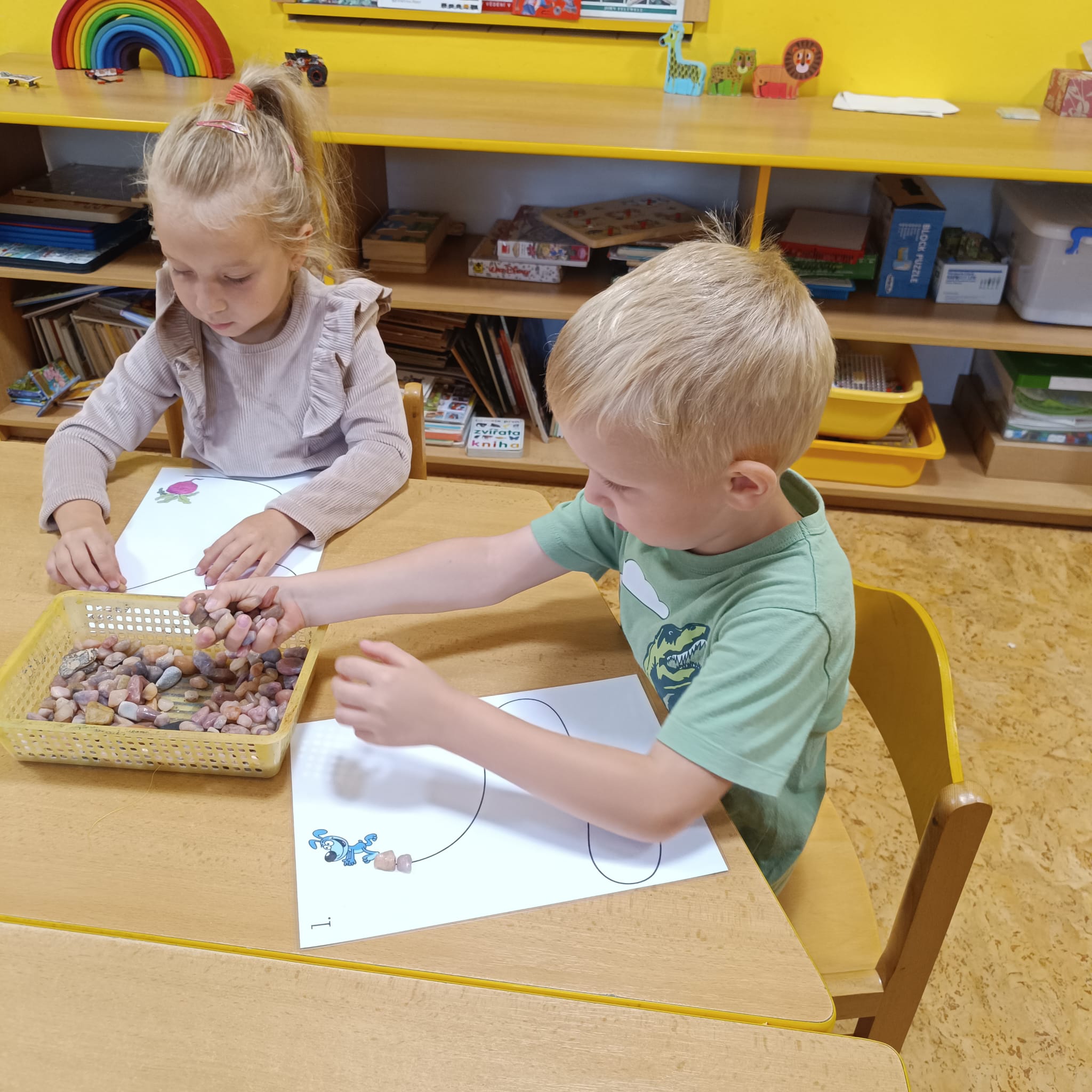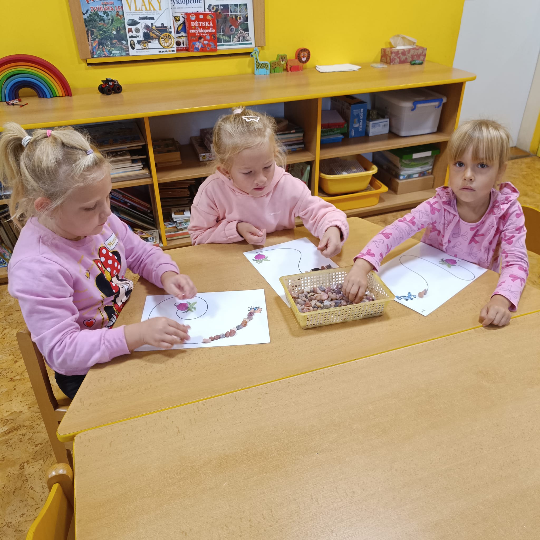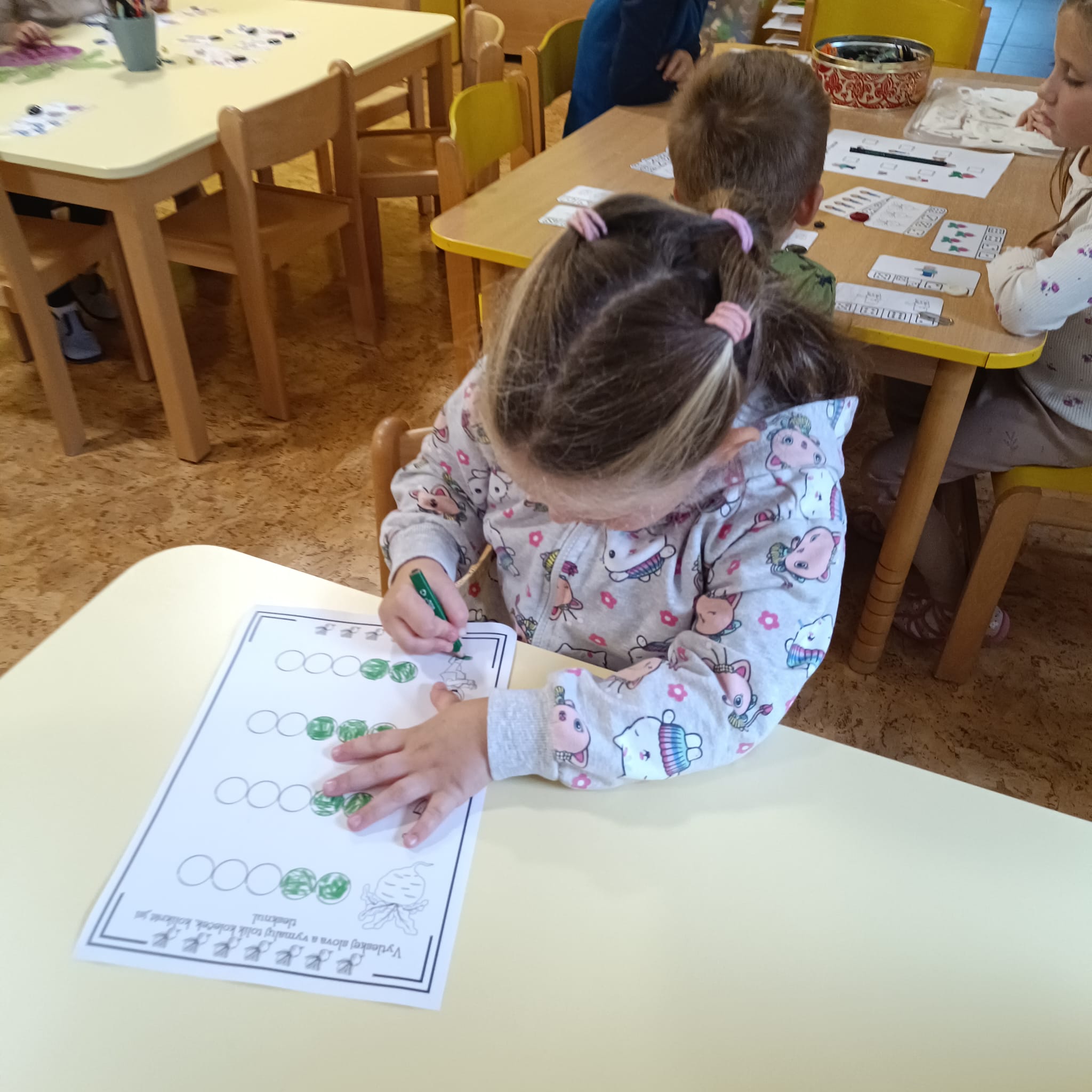 Pohádkové aktivity u stolečku - počítání, hledání postav v mouce, přiřazování stínů, skládání cestiček, vybarvování ve dvojici. 24.9.2025