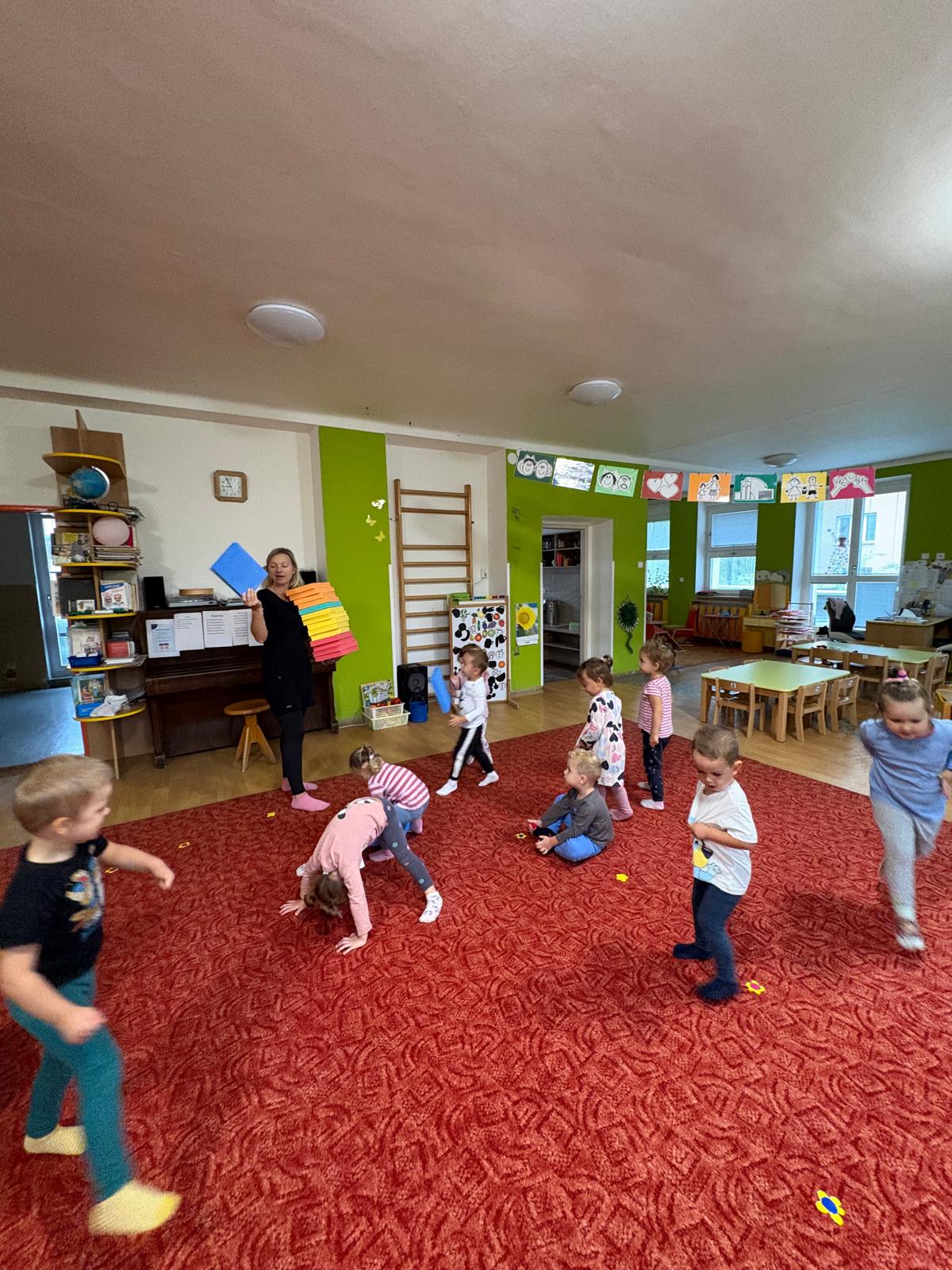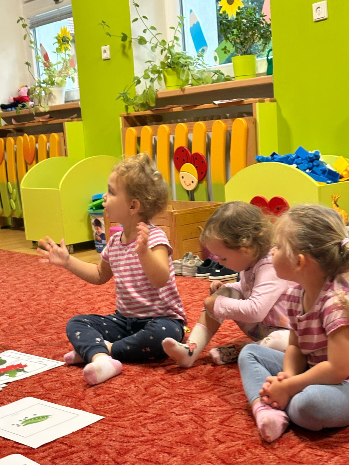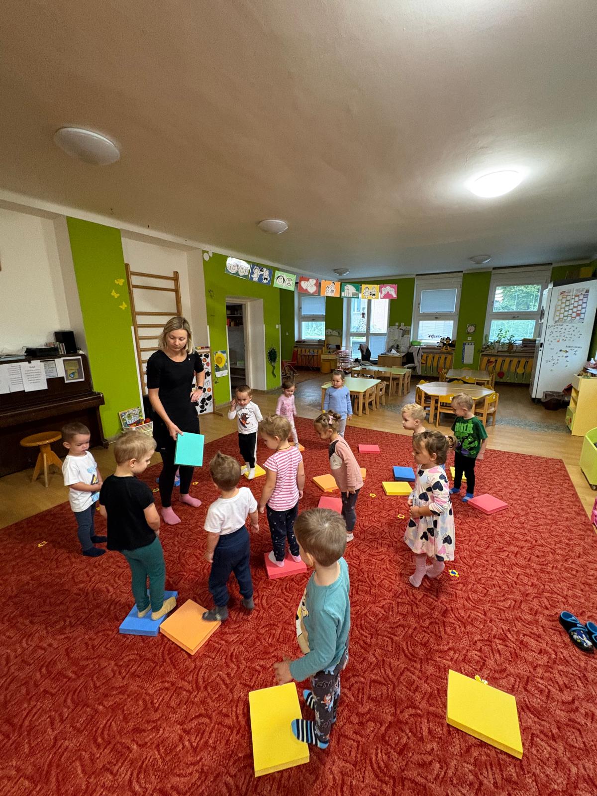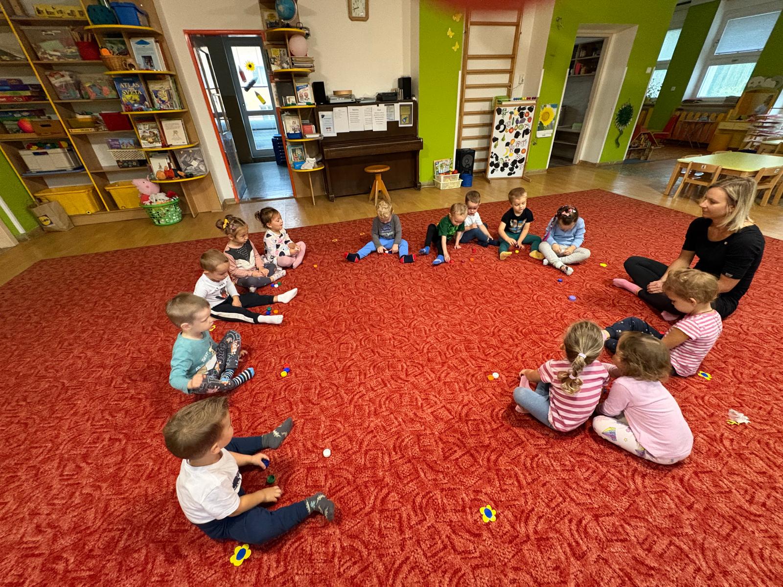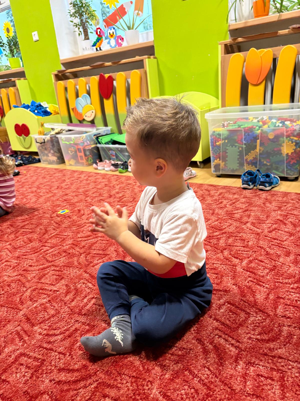 Zkoušíme vytleskat své jméno, poznáváme barvy a trénujeme počítání do tří:-)