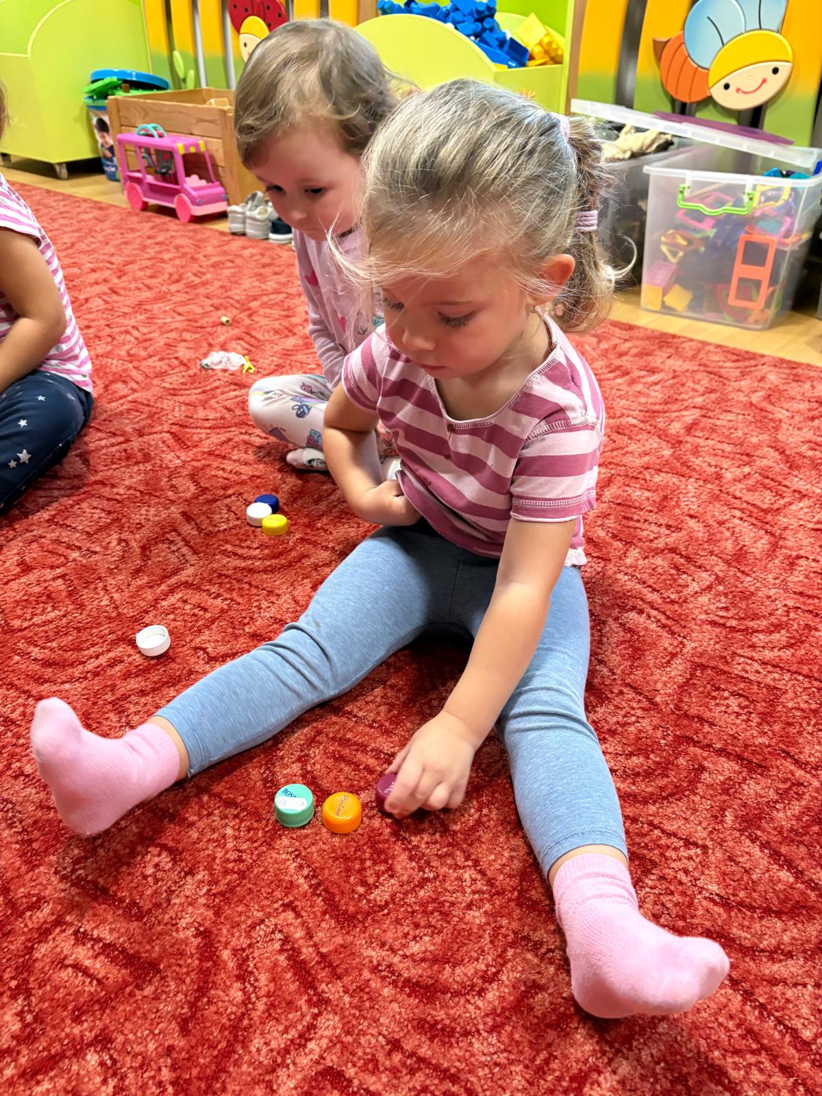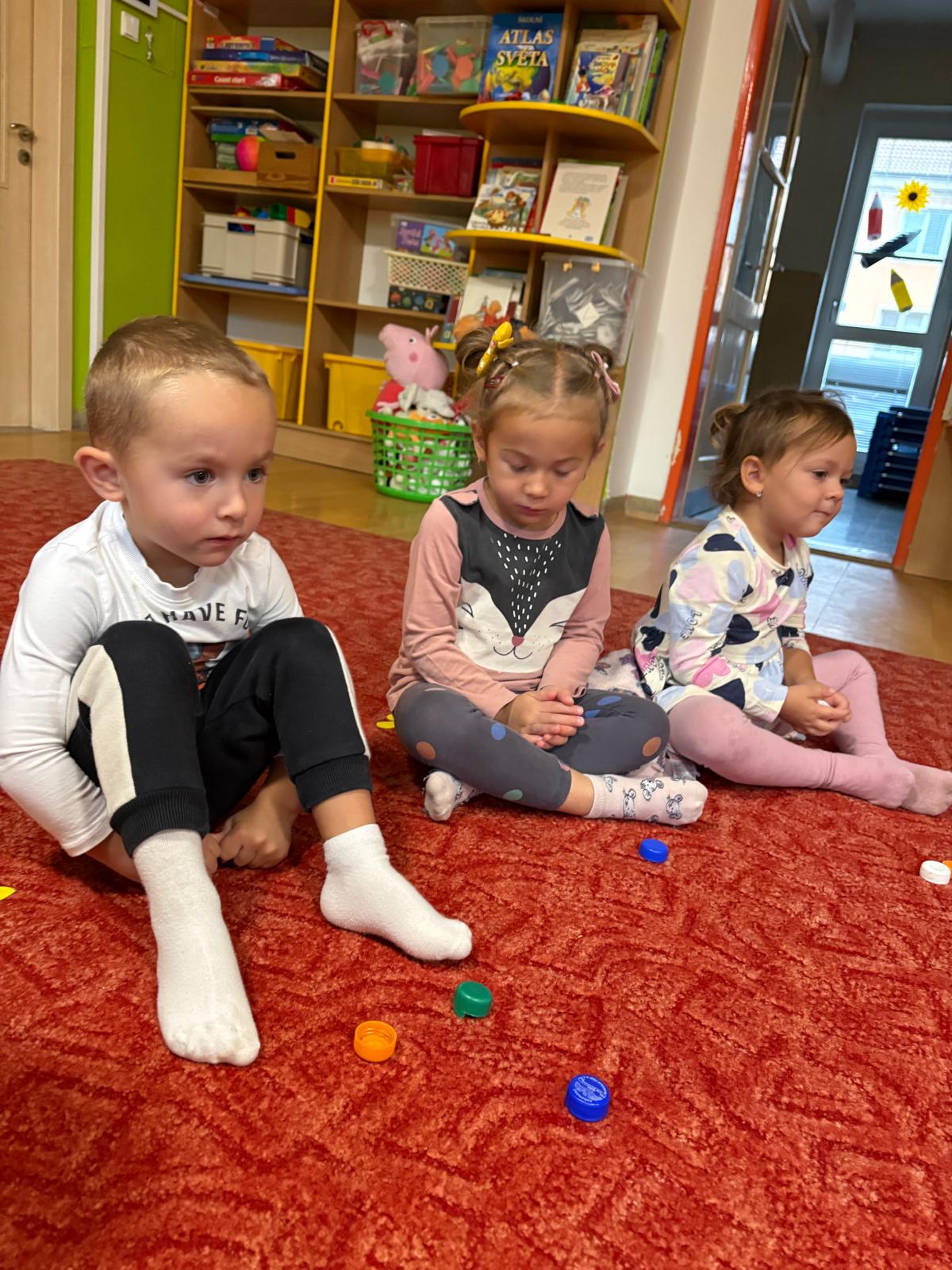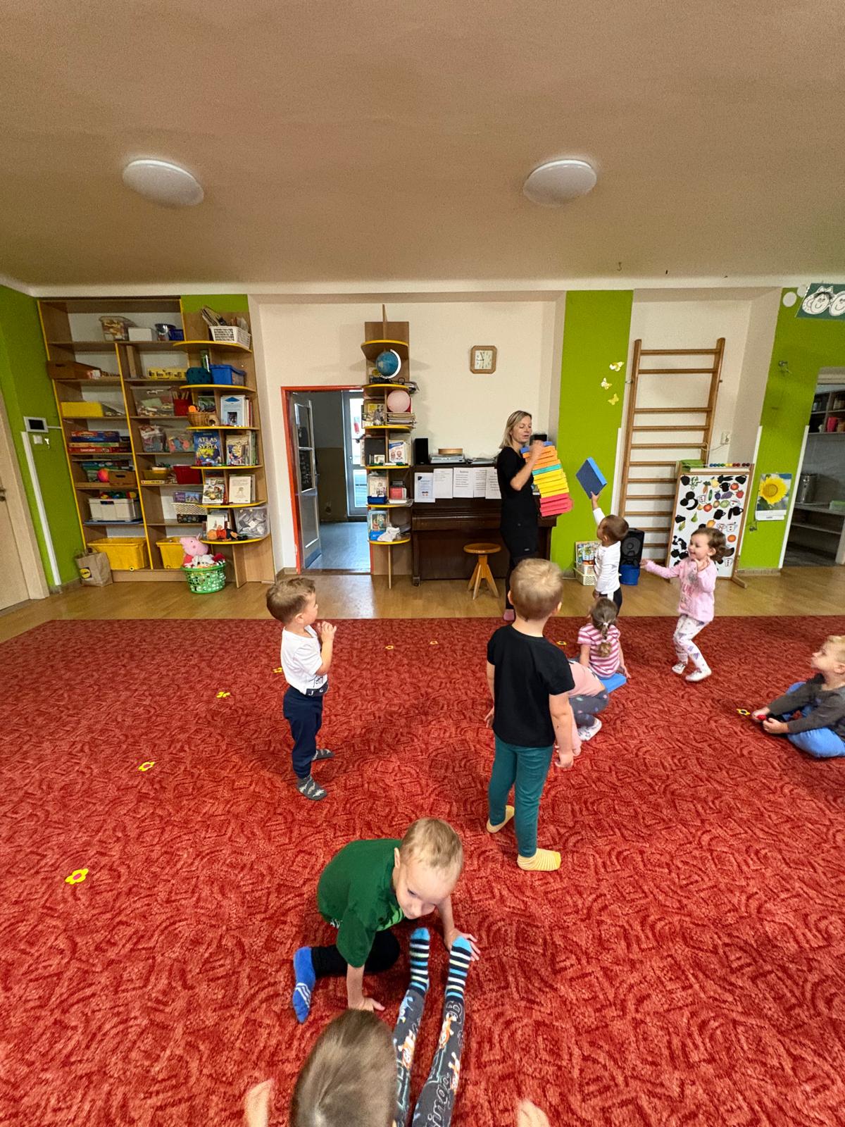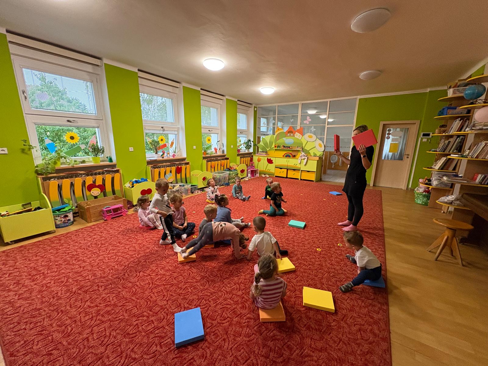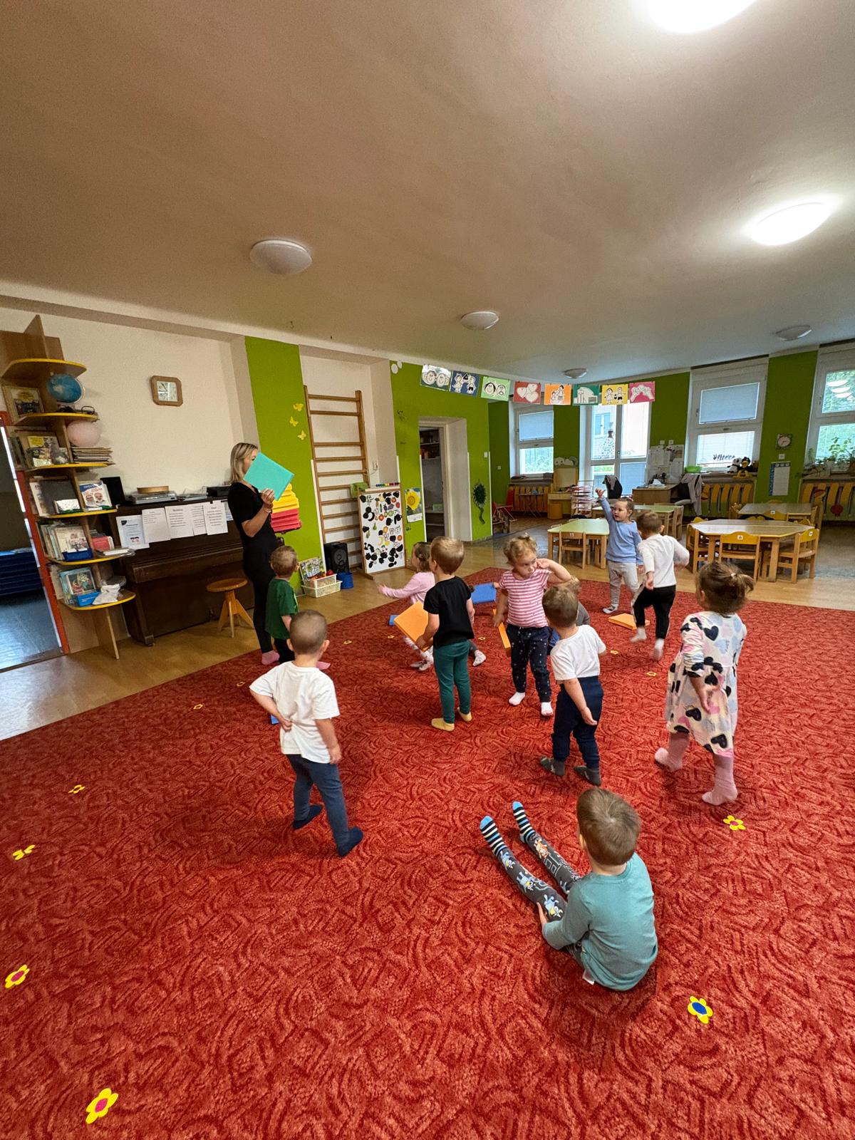 Zkoušíme vytleskat své jméno, poznáváme barvy a trénujeme počítání do tří:-)
