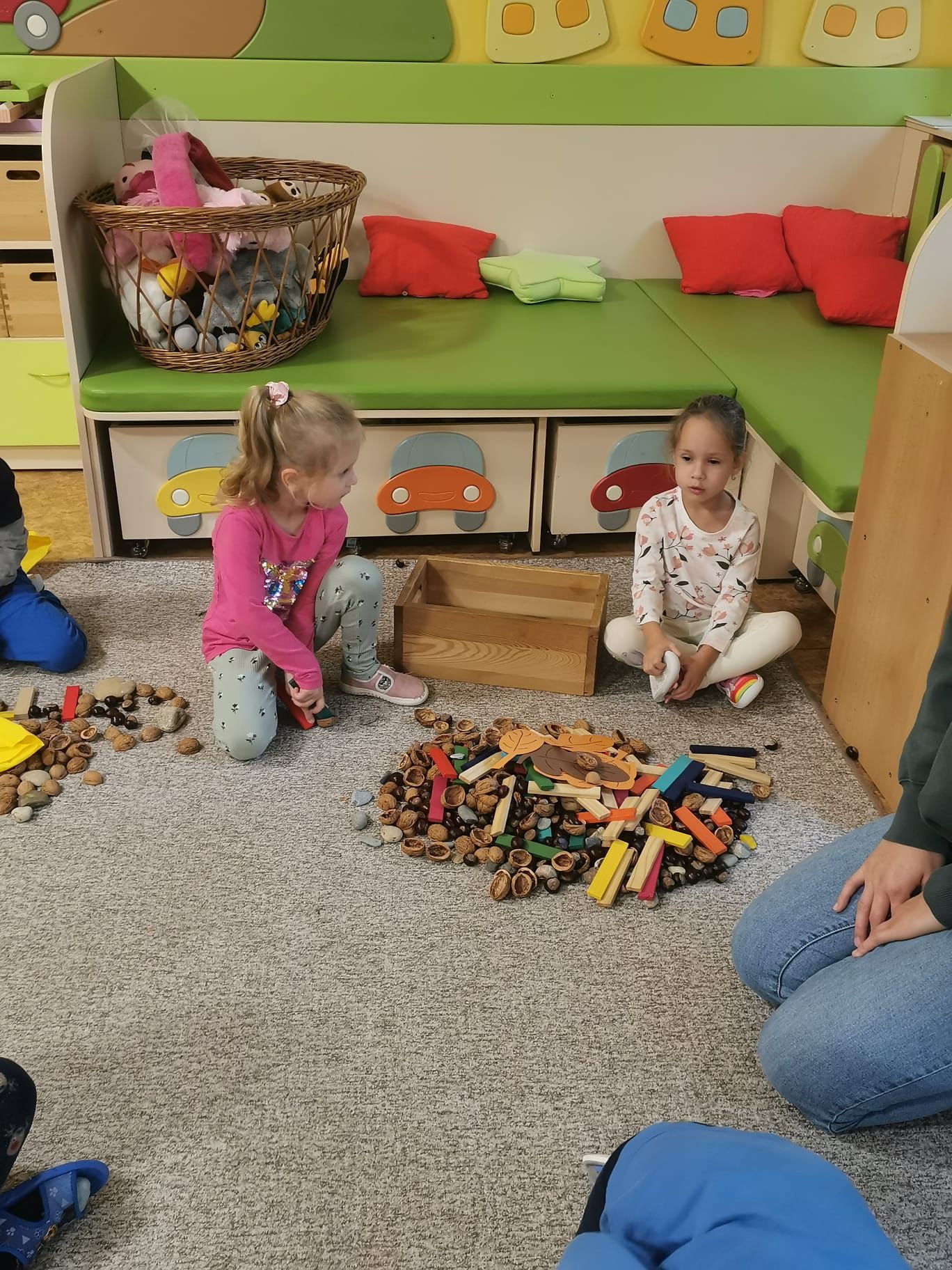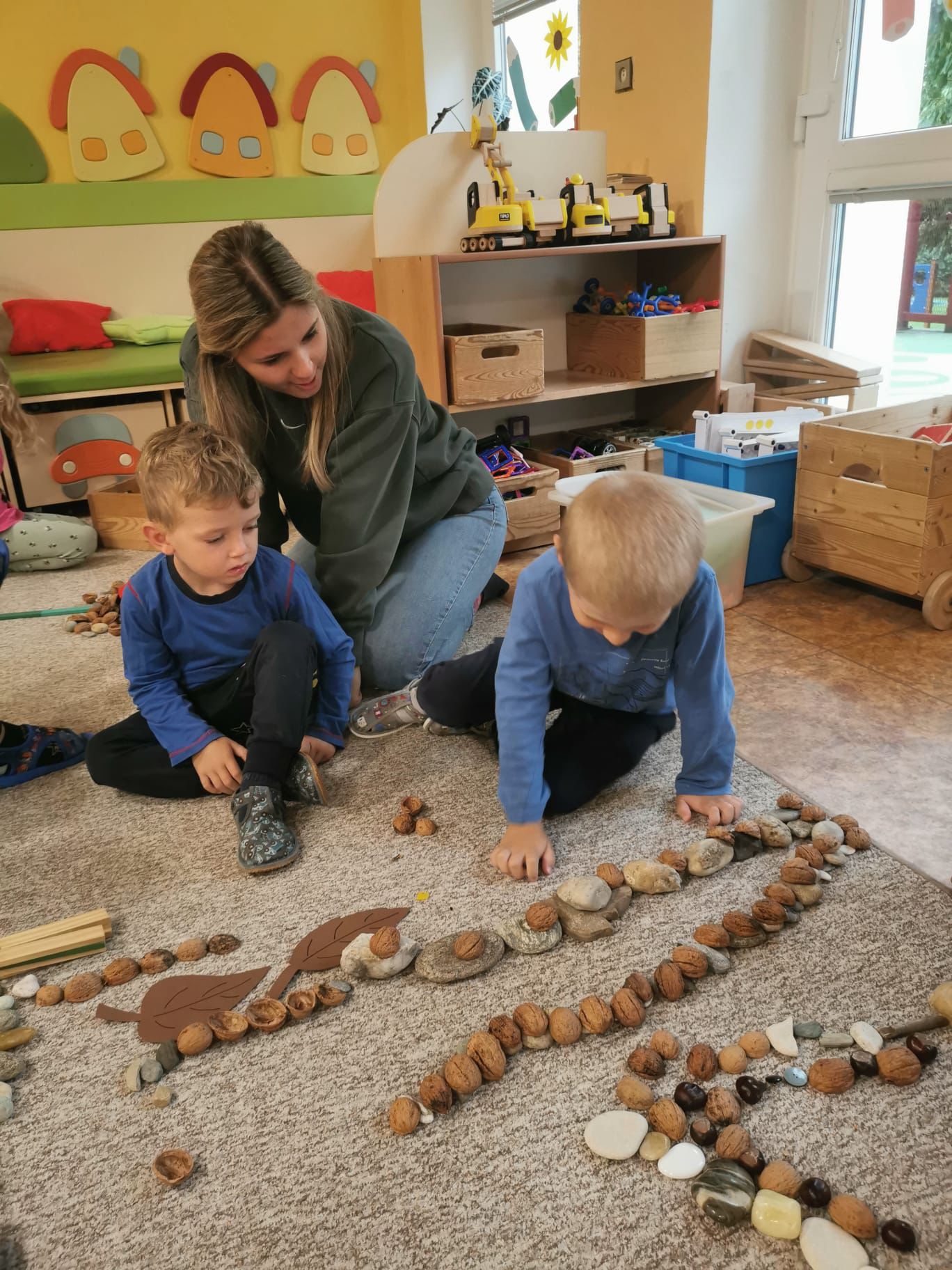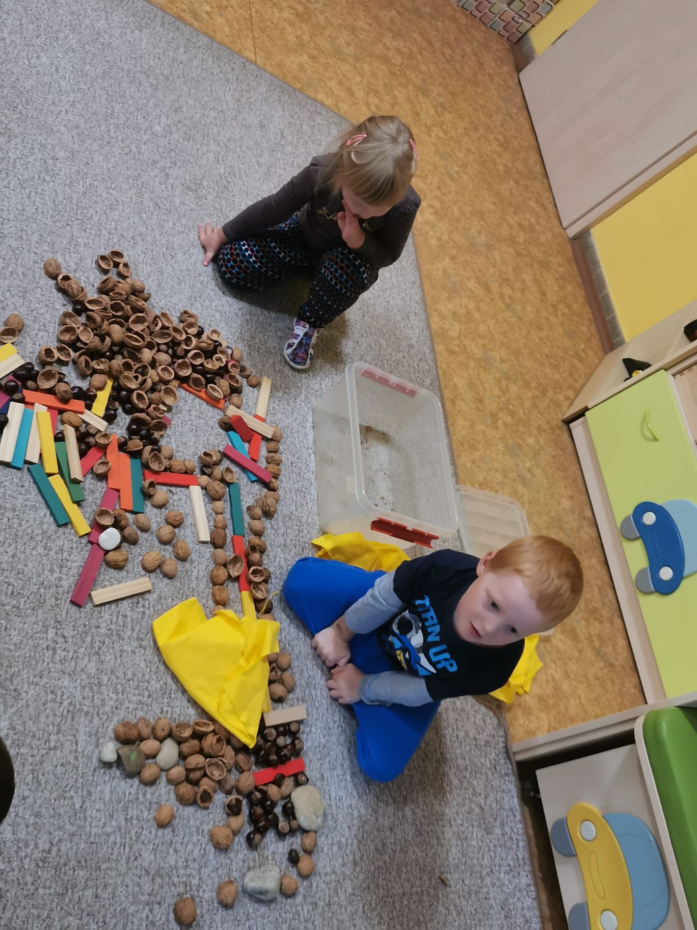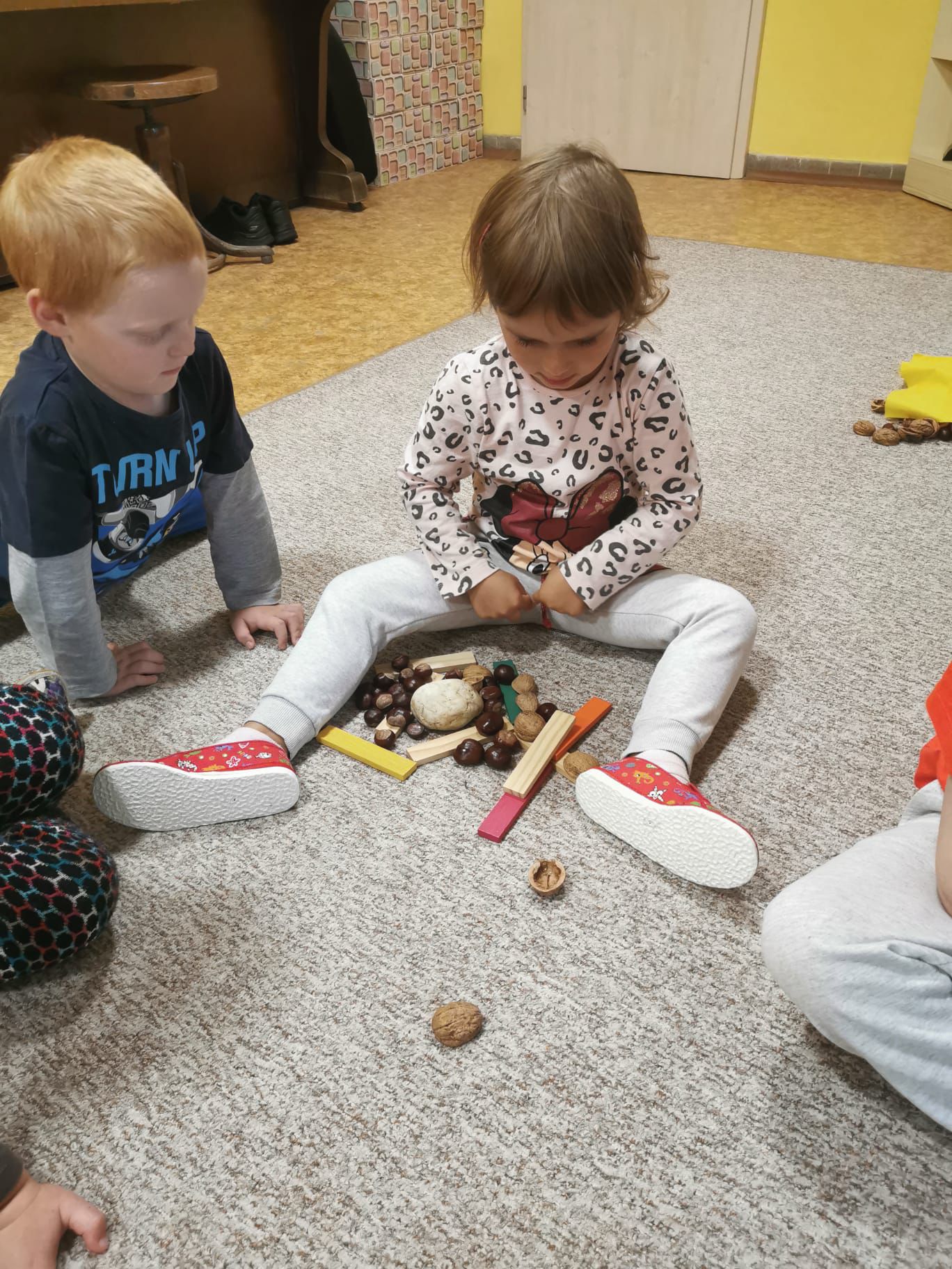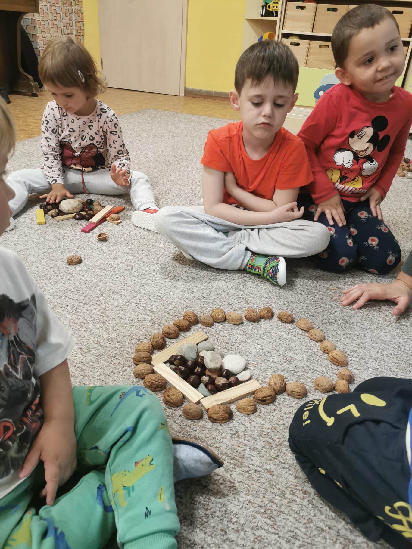 Artefiletické pojetí podzimní krajiny - domečky pro ježka.